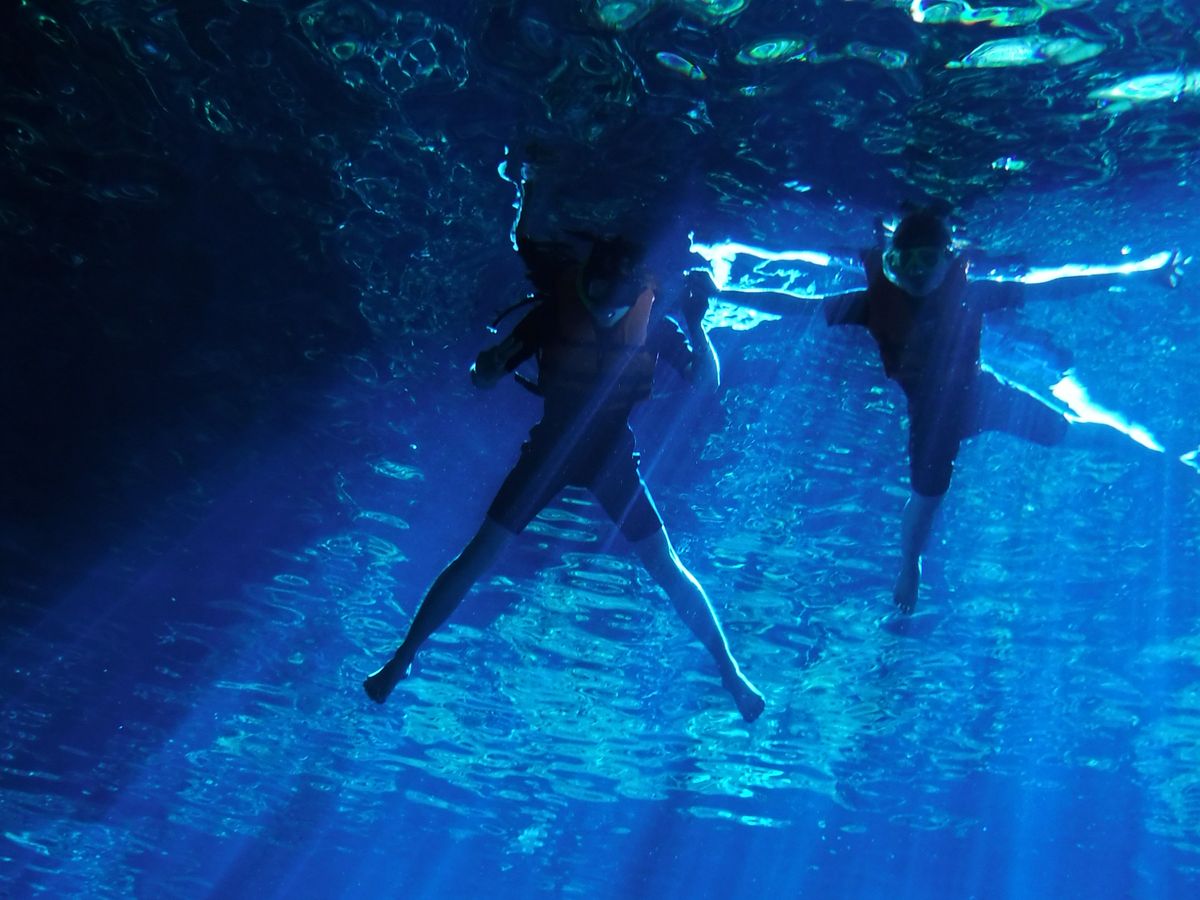 ガイドさんの案内で水中へ、一瞬でしたが光のカーテンを見る事ができ、感動しました。水中はとても美しく、魚にエサをあげることもできて楽しかったです。水中カメラは持っていく方がいいと思います。自由時間も少しだけありました。