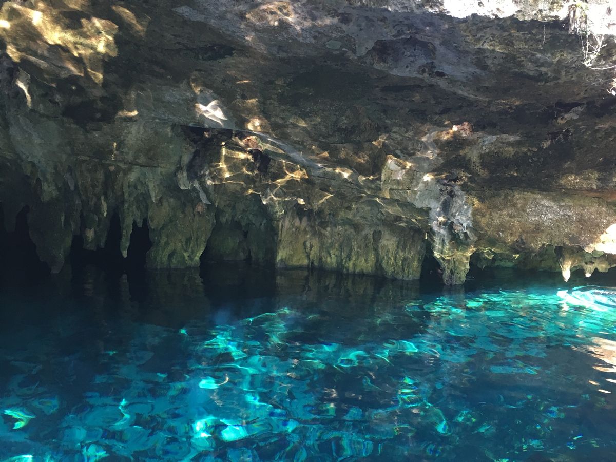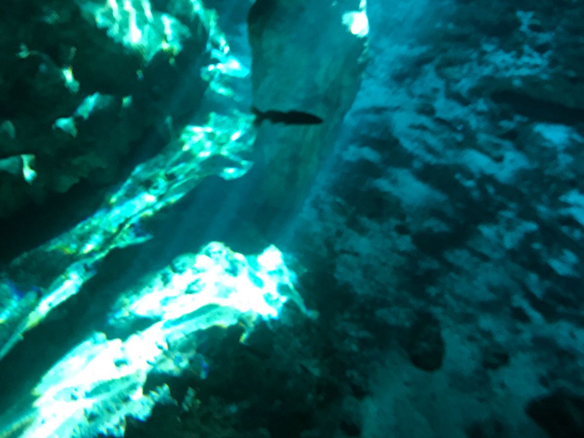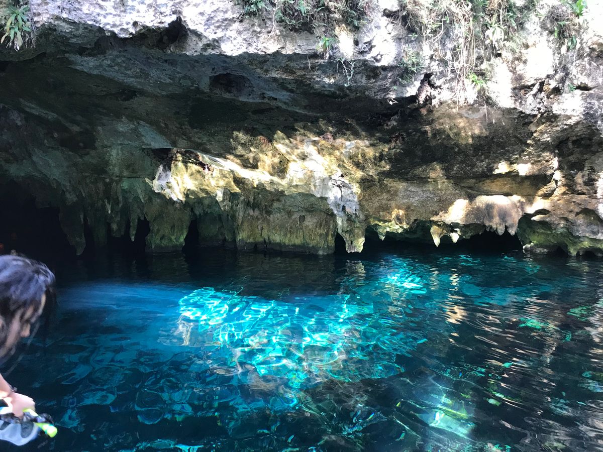 グランセノーテでは、光が差し込み、水の中から見える光のカーテンが幻想的で綺麗でした!