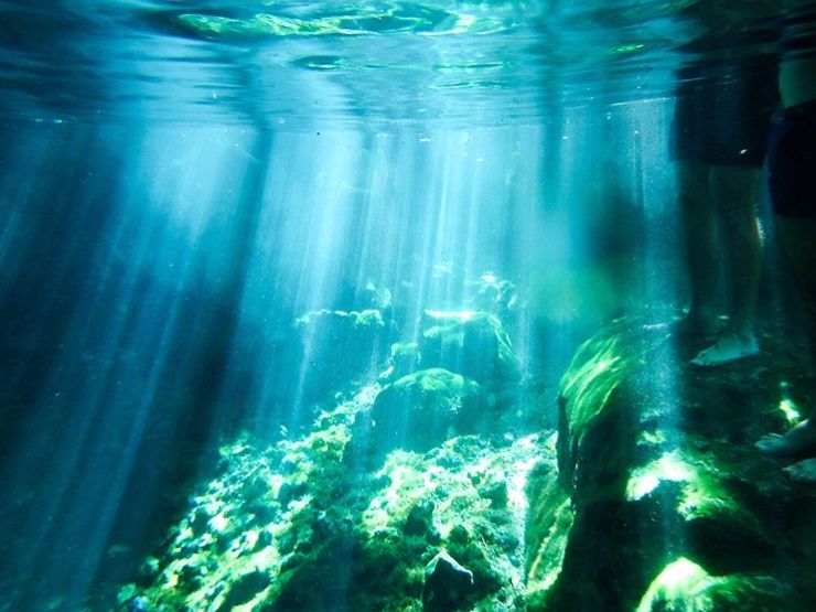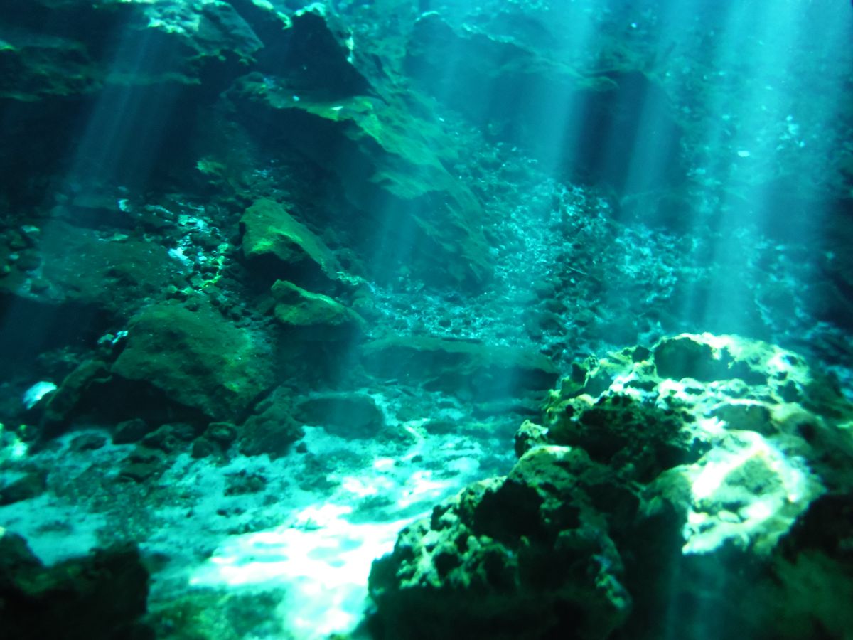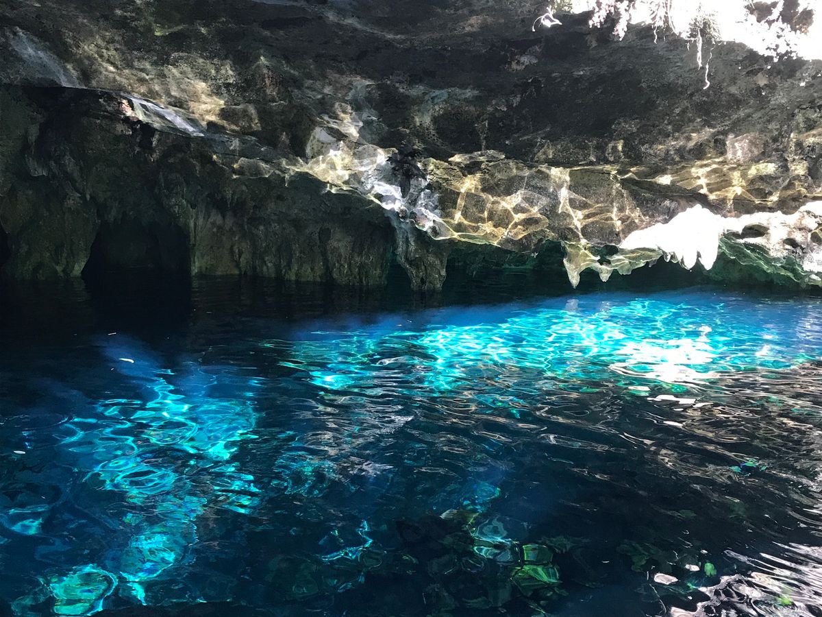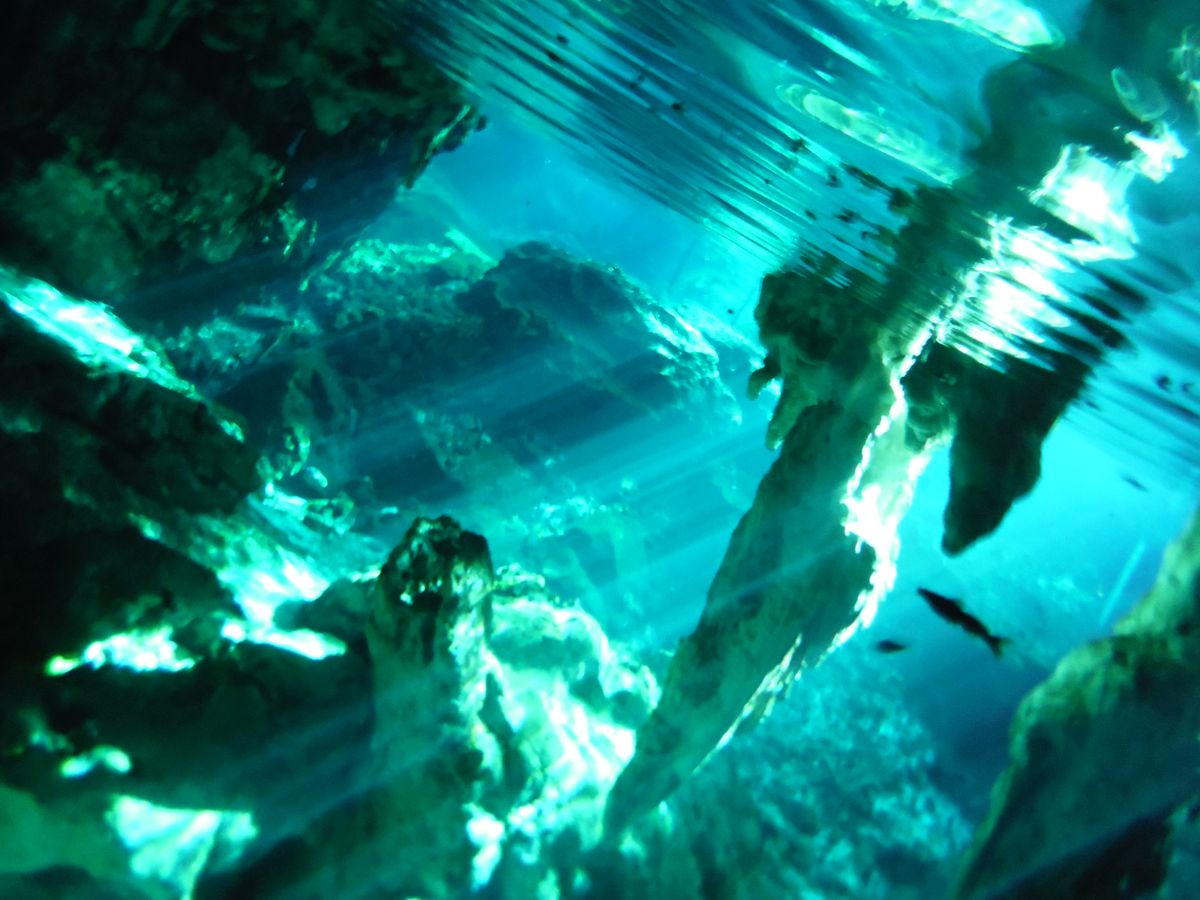 グランセノーテでは、光が差し込み、水の中から見える光のカーテンが幻想的で綺麗でした!