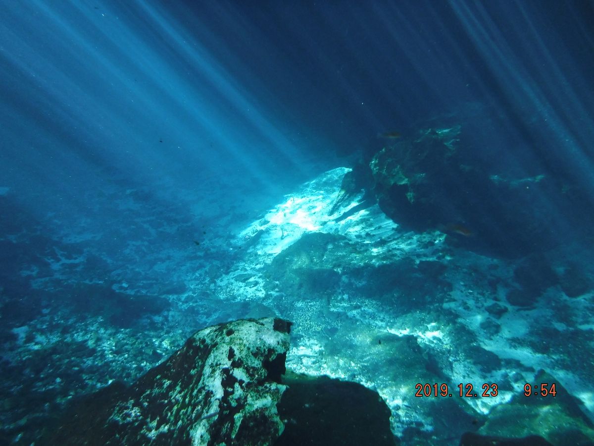セノーテでは太陽が出て光のカーテンも見ていただけてよかったです。