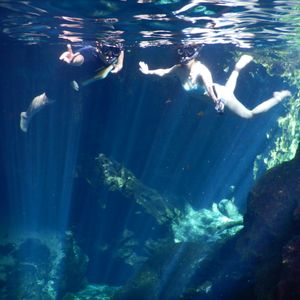 ガイドさんと一緒にセノーテ内をシュノーケリングで案内してもらい貴重な体験ができました。セノーテは水の透明度が高く水中では光の柱がキラキラと輝いていて、とても幻想的でした。ウェットスーツを借りて着ていたので自然に身体が浮いてくれ、ゆったりと楽しめました。