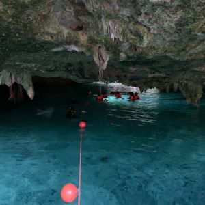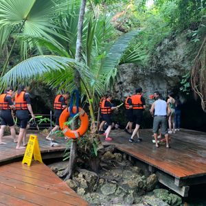 朝1番という事で人が少ないかなと思っていましたが思っていたより別のツアーに参加していた方達が先にシュノーケルなど楽しんでいました。セノーテは透明度たっぷりで40分ほどシュノーケルを楽しみました!天気も良く水中から光のカーテンを見ることができました。私たちは携帯の防水ケースを持っていなかったので水中から写真を撮ることは出来ませんでしたが用意できる方は持っていくことをおススメします!
