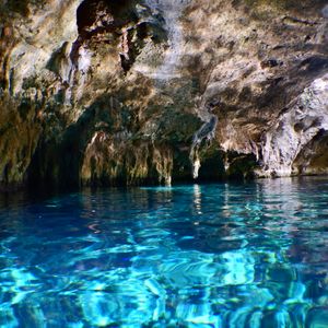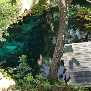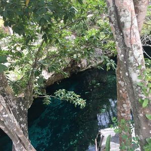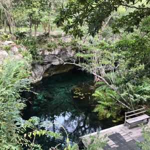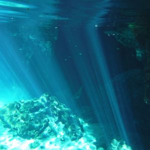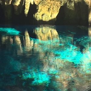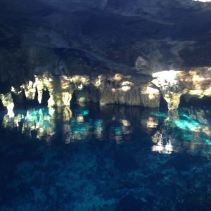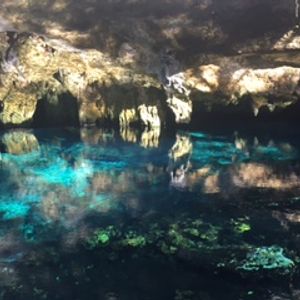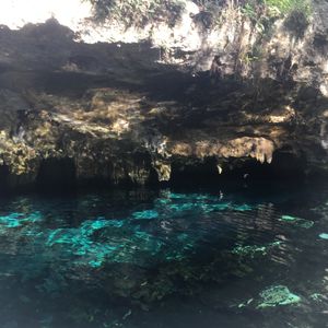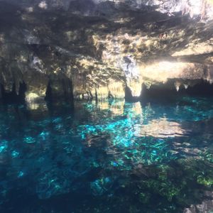初めてのカンクン旅行で滞在日数も少なかったため、早朝出発でお昼には帰ってこれるグランセノーテのツアーに参加しました。ガイドさんは元バックパッカーの方のようで、メキシコのいろんな話をしていただき、とても楽しく過ごしていると1時間ほどで到着。はじめに上から説明と写真撮影をしてくれて、ウェットスーツに着替えセノーテへ。早朝だったのでお客さんはまだおらず、自由に泳いだり写真撮影をしたりしました。とてもいい天気で光のカーテンもたくさん見れ、カメさんもいました。ガイドさんも一緒に入って洞窟の奥の方まで案内してくださりました。セノーテに入る時間は1時間ほどでしたが、途中から好きなところに行ったりもでき、丁度いい時間でした。またここで、孔雀にばったり会ったり、帰りの送迎でお菓子や温かい飲み物(セノーテを上がって少し体が冷えていたので嬉しかった)をいただいたのがよかったです。帰ってからもまだ午後からの時間がたっぷりあったので、時間を有効に使えました。いい思い出になったツアーでした。