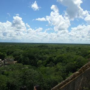 チチェン・イッツァ遺跡は登れませんがエクバラン遺跡は登れるところも楽しいです。頂上からの景色は見渡す限りジャングルで、この遺跡がどんなところにあるものなのかを感じることができました。登ったところのレリーフや彫刻が、チチェン・イッツァ遺跡よりもはっきりと残っていました。