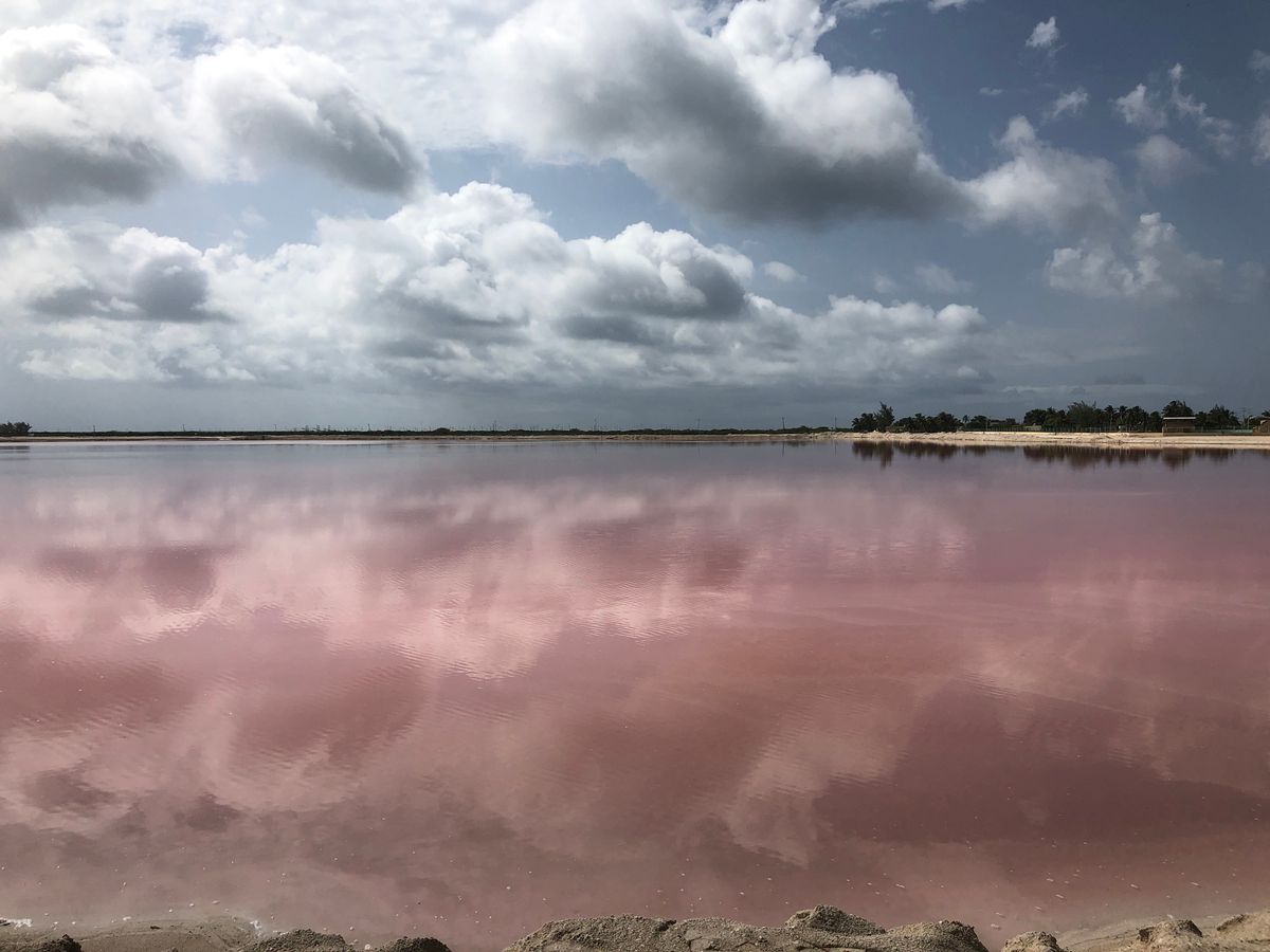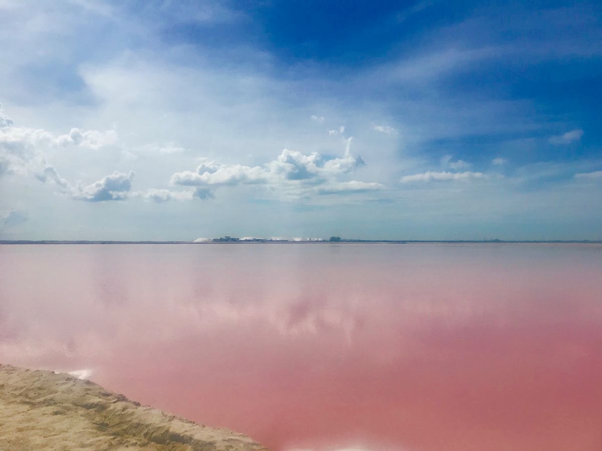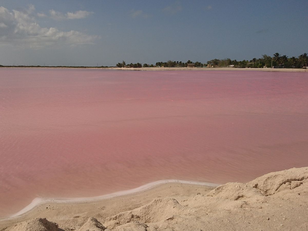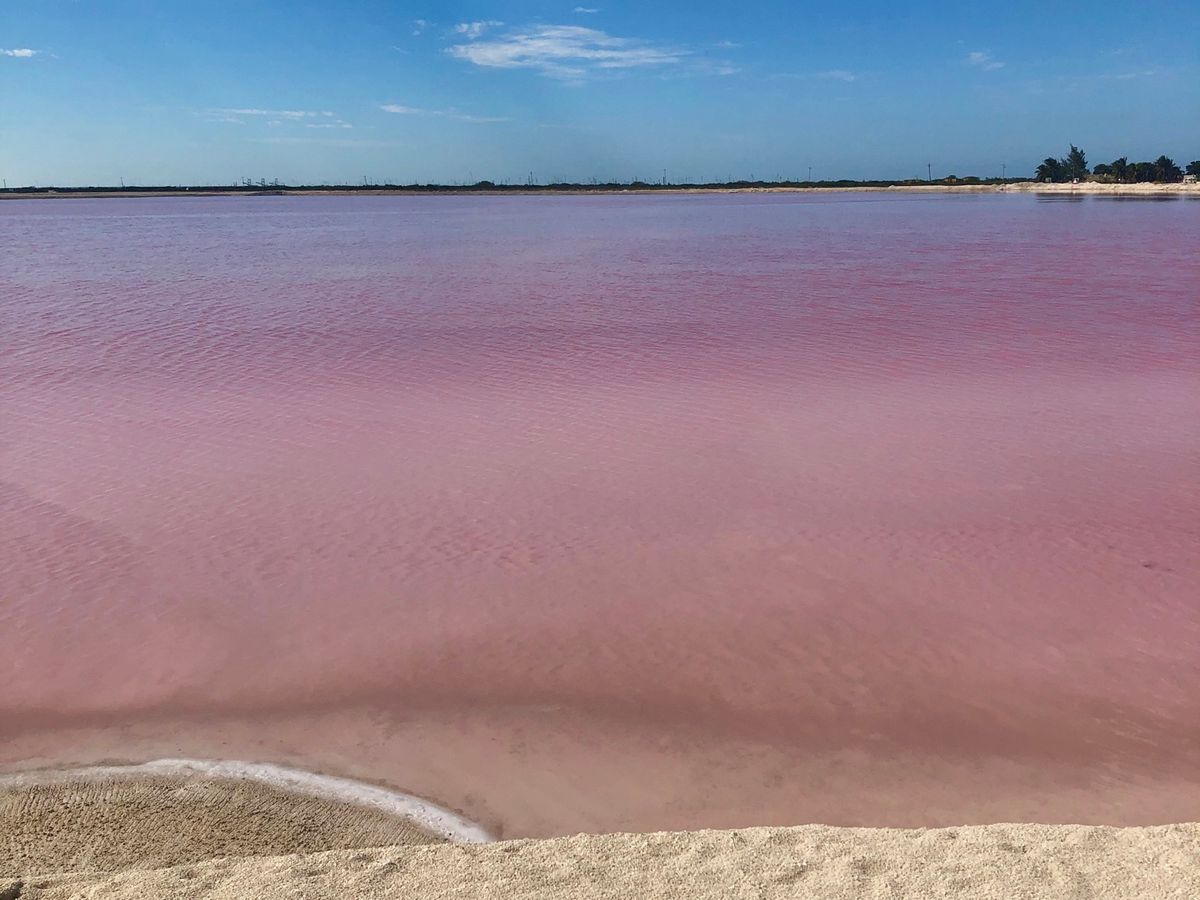 セノーテイキルでランチ後ピンクレイクへ、うちの家族の自称晴れ女2人のおかげもあり!?塩田は鮮やかなピンクを演出、ピンクだけに林家パー子の登場によりナイスな写真もたくさん撮ってもらえました。
