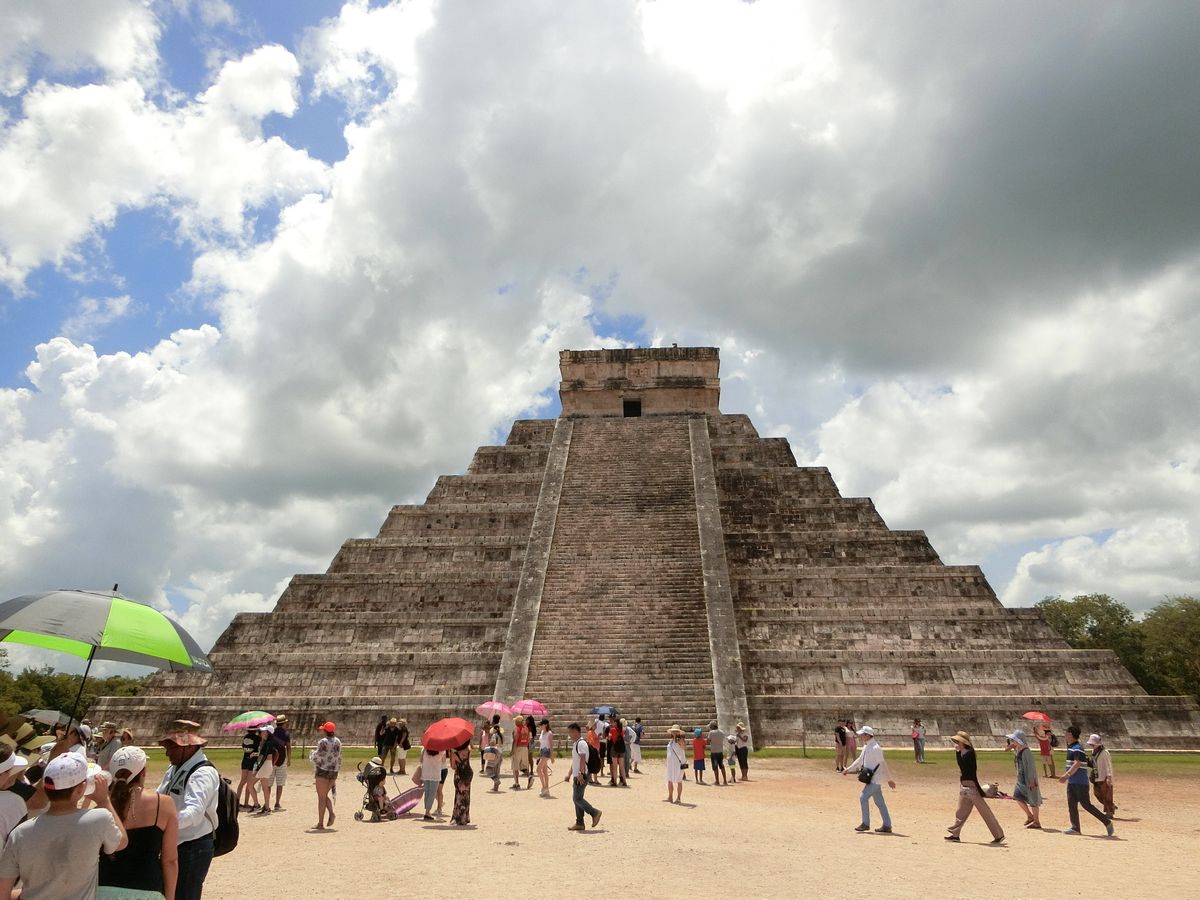 チチェン遺跡は本当に人人人!!そして暑いです!日傘を貸してくれ助かりましたが水は必須です!