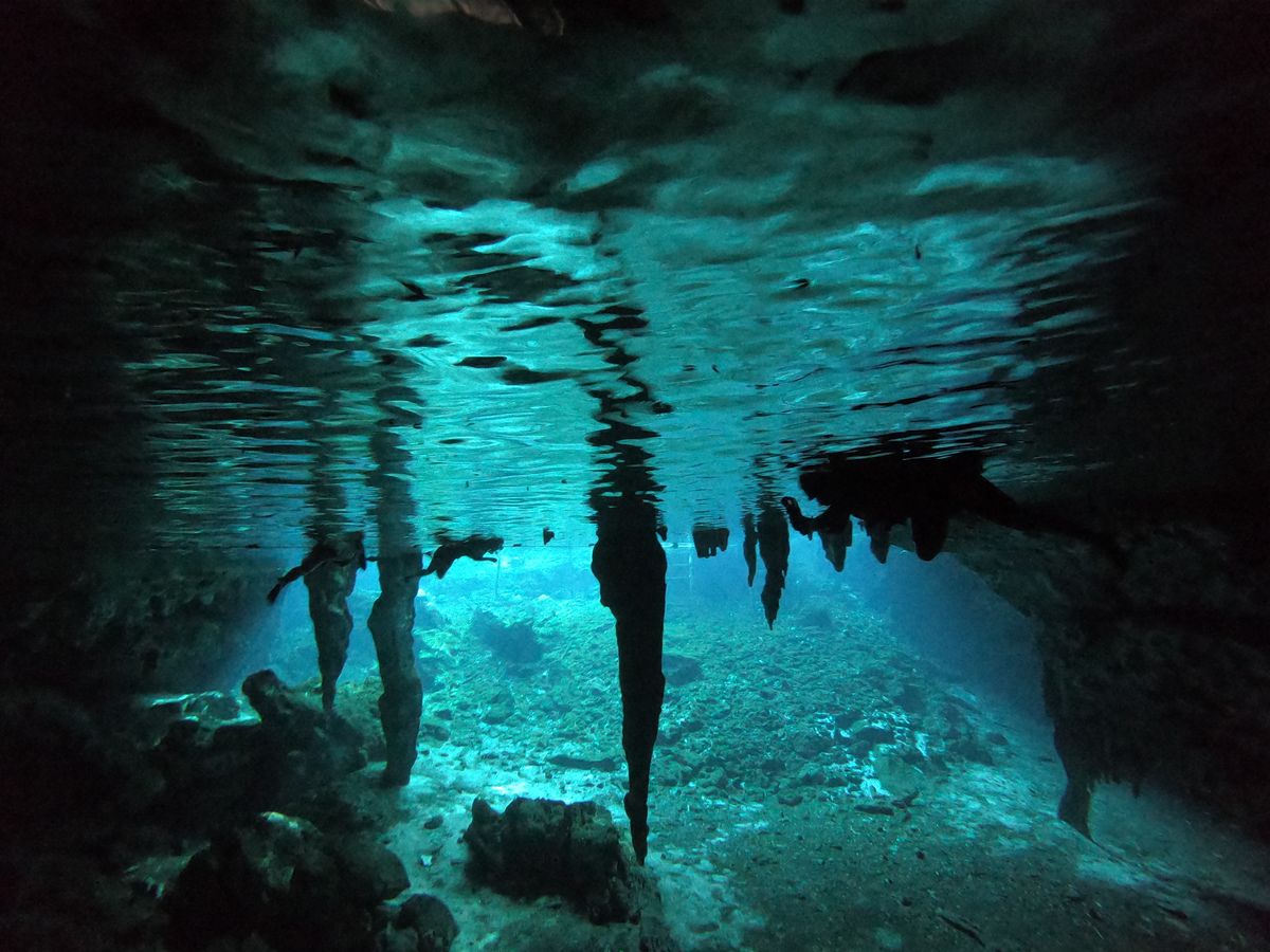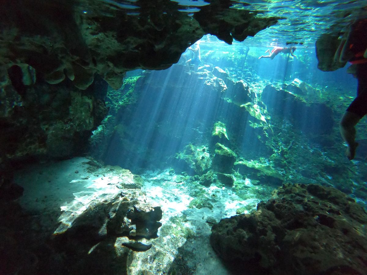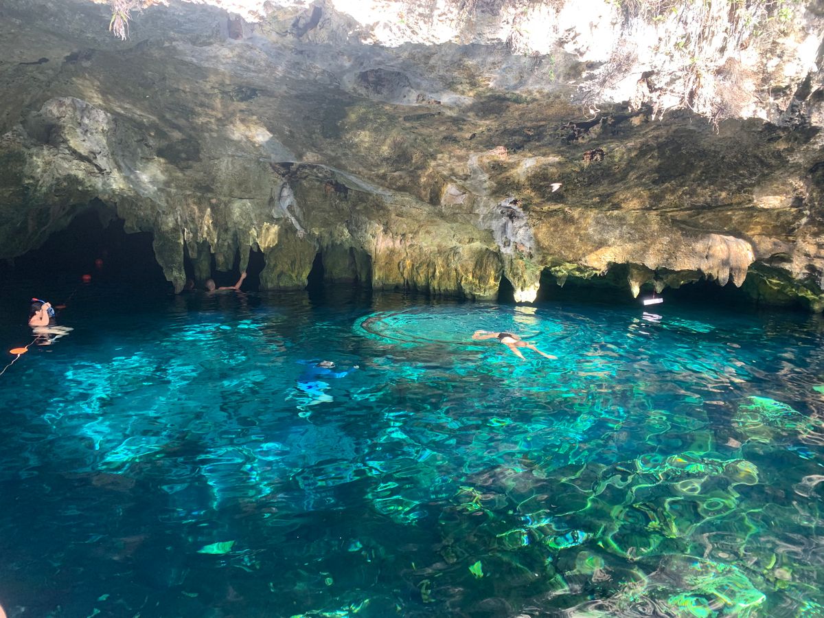 朝6:30集合でしたが、これはグランセノーテが8:10開園にあわせたものでした!グランセノーテの朝一番の透き通った青さは他にはありません!晴れ間も見え光のカーテンも写真に残すことができました!洞窟内を1周し戻ると人も増え朝一番に比べると多少の濁りを感じます!なので朝一番に行けるツアーはオススメです!!