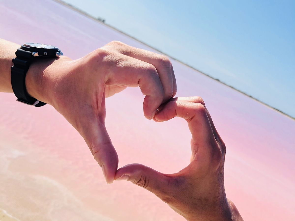 その後ピンクレイクに移動。ピンクレイクの中には入ることは出来ないのですが、日光の具合によって色が変わるのでそれを見てるだけでも楽しいです。写真も映えるやつが撮れます。私たちはガイドさんに指示してもらいたくさん素敵な写真を撮ってもらえました。