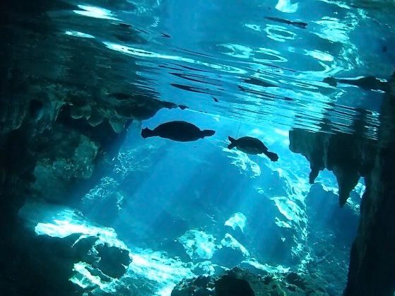 グランセノーテは朝イチで入場し、まだ誰も入っていない透明度の高いうちにシュノーケリング。水着は着て行くのが正解。タオル、ビーチサンダルは必須です。カメラをレンタルしたので水中の神秘的な様子が撮れました。
