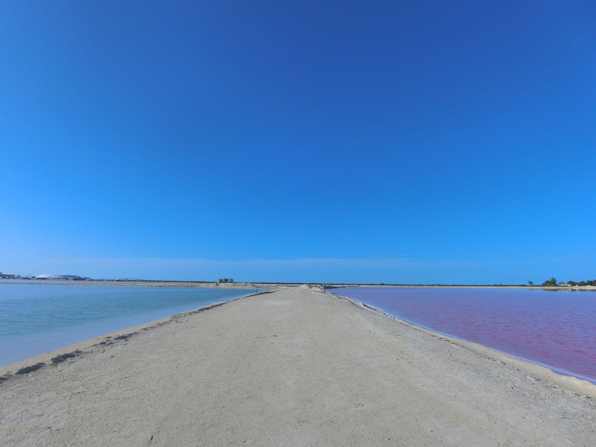 青空にピンクの湖がとても綺麗でした。風や日差しがとても強いので、飛ばされない帽子やサングラスの持参が必須です。現地スタッフの方や中川さんがインスタ映えする写真の撮り方を教えてくださいます。スマホを駆使してより一層オシャレな写真が撮れますよ!