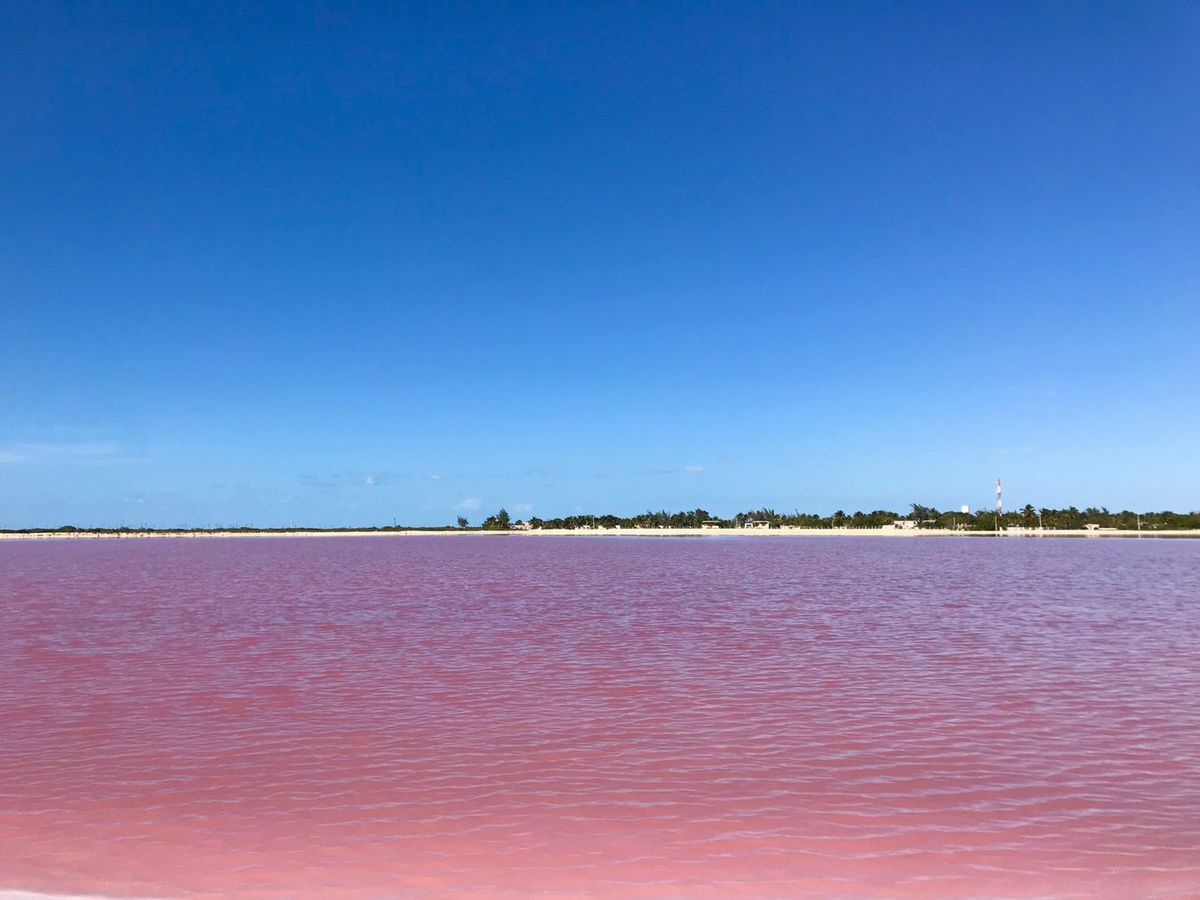 朝のグランセノーテはオープン直前に到着、誰もいないグランセノーテは水が澄んでいて、ほんとに綺麗でした。この時間に行かないと見れない景色だと思いました。また、ピンクレイクも一番良い時間に行くことが出来、空の青さと塩田のピンクの綺麗さはとても見事でした。