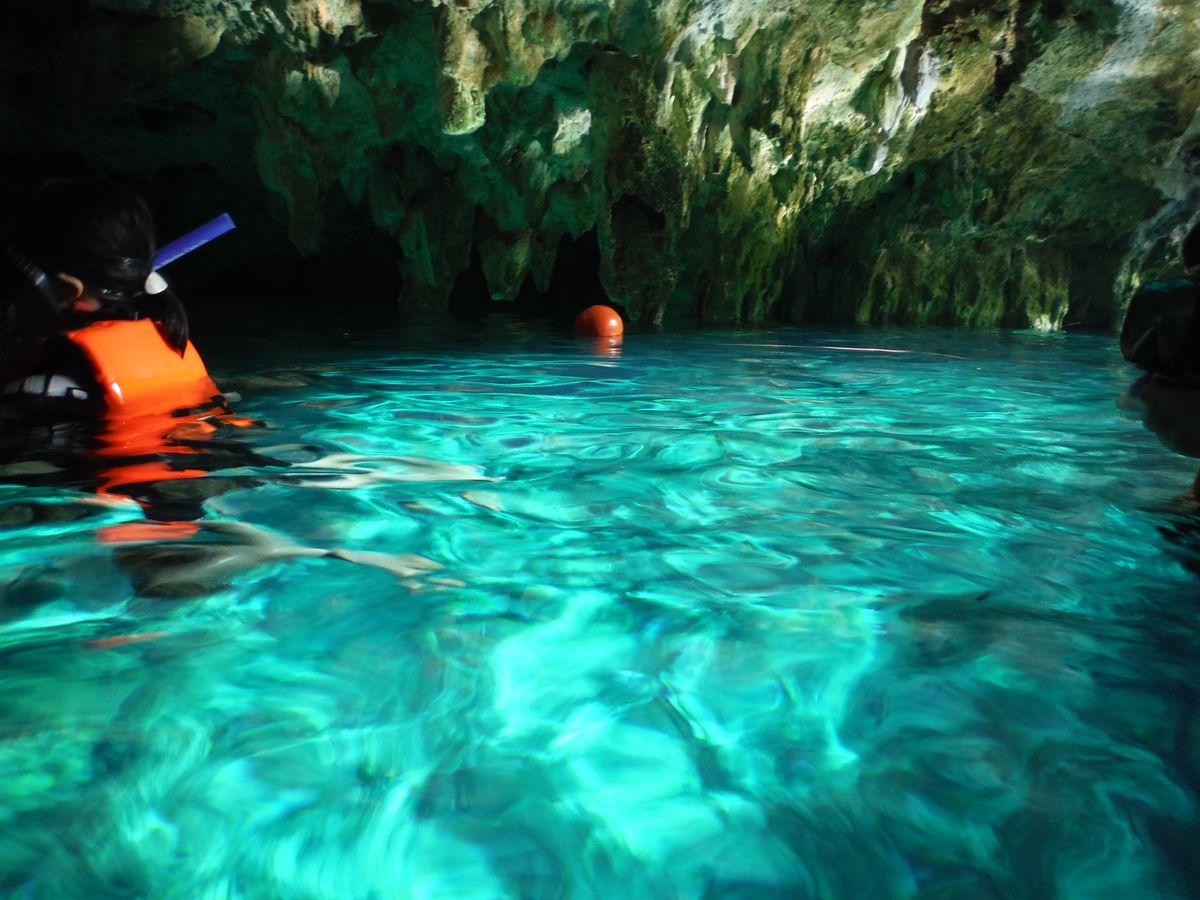 その後は、希望者だけで泳いで洞窟に入りました。狭い部分を潜ってくぐったり水中鍾乳石を見れたり、ちょっと探検家気分で楽しかったです。