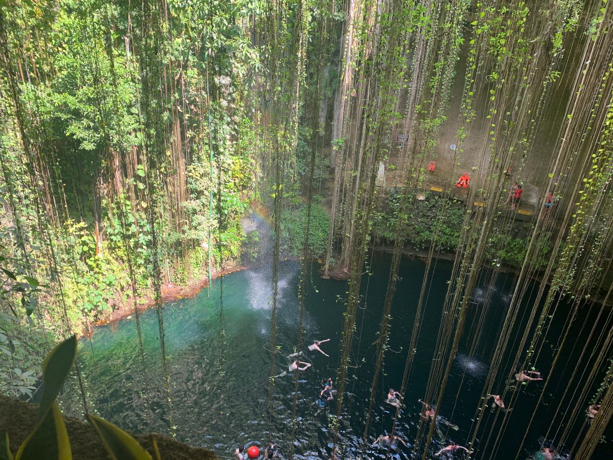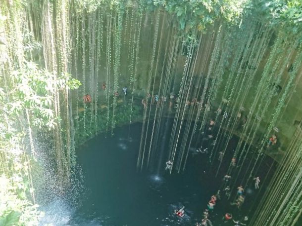 セノーテイキルは撮影のみでした。上からの撮影も天気が良ければ虹が見えたりするので綺麗でした。しかし、是非1番下まで行って撮影してほしいです。泳ぎたくなりました。泳いで真下から見上げた撮影がしたかったです。