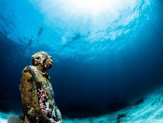 約400体の彫刻が海底に沈む「水中美術館」とカリブ海のお魚が集まる「サンゴ礁ポイント」の2か所にご案内