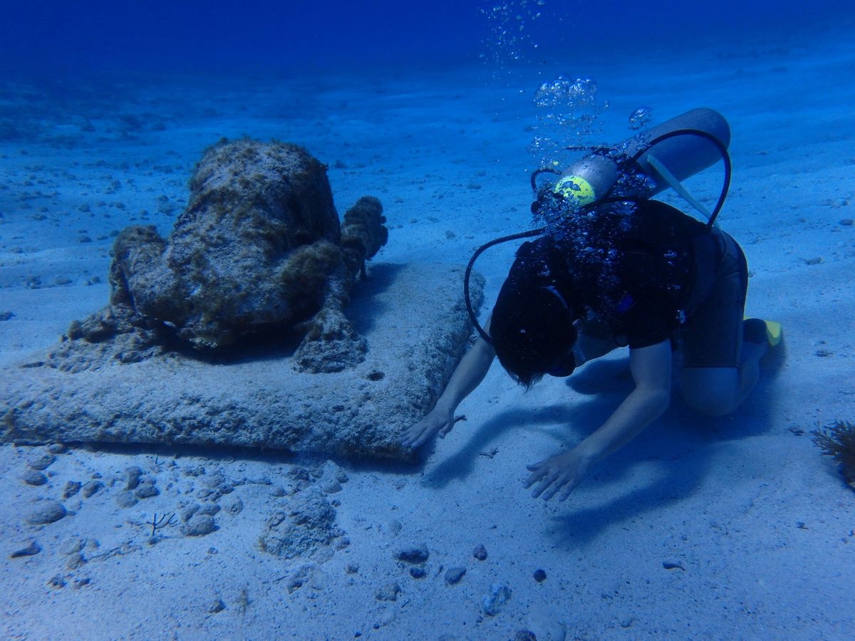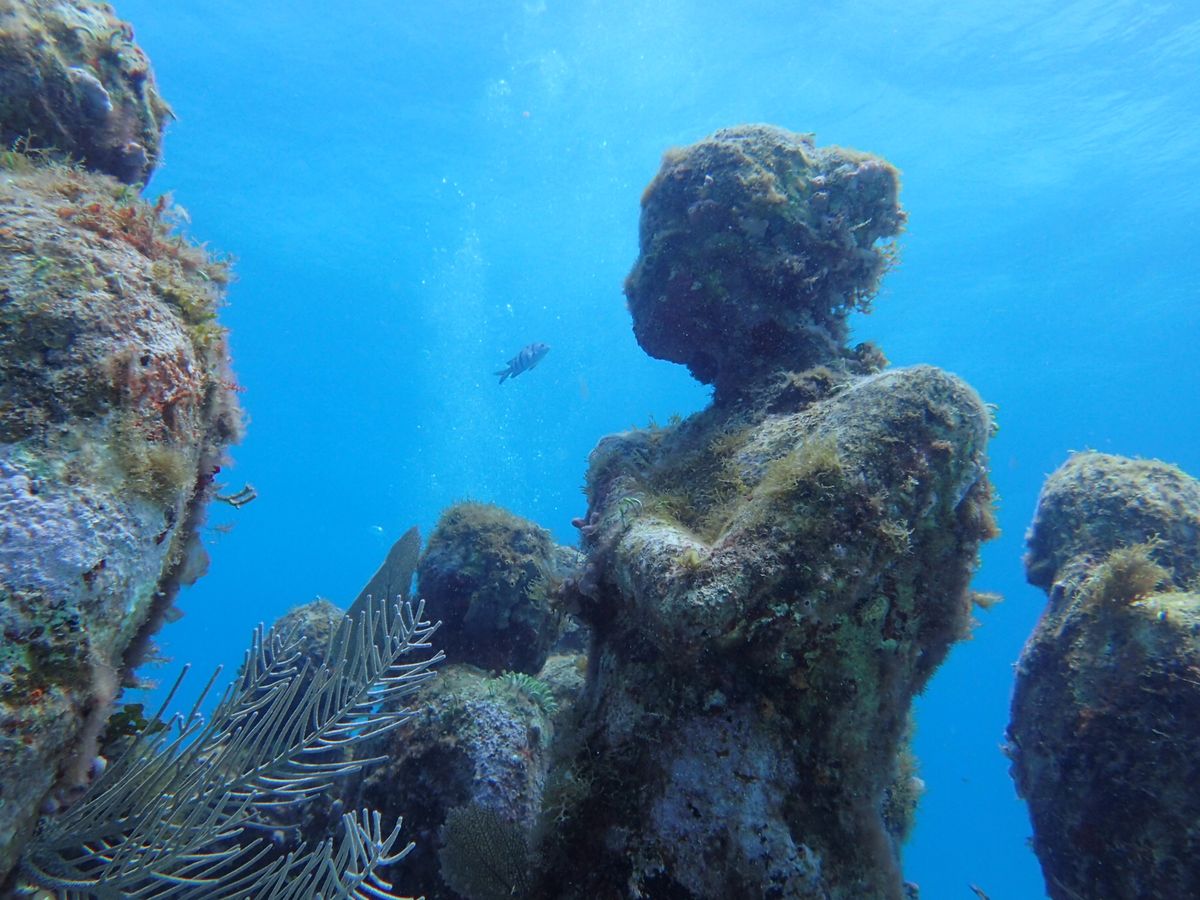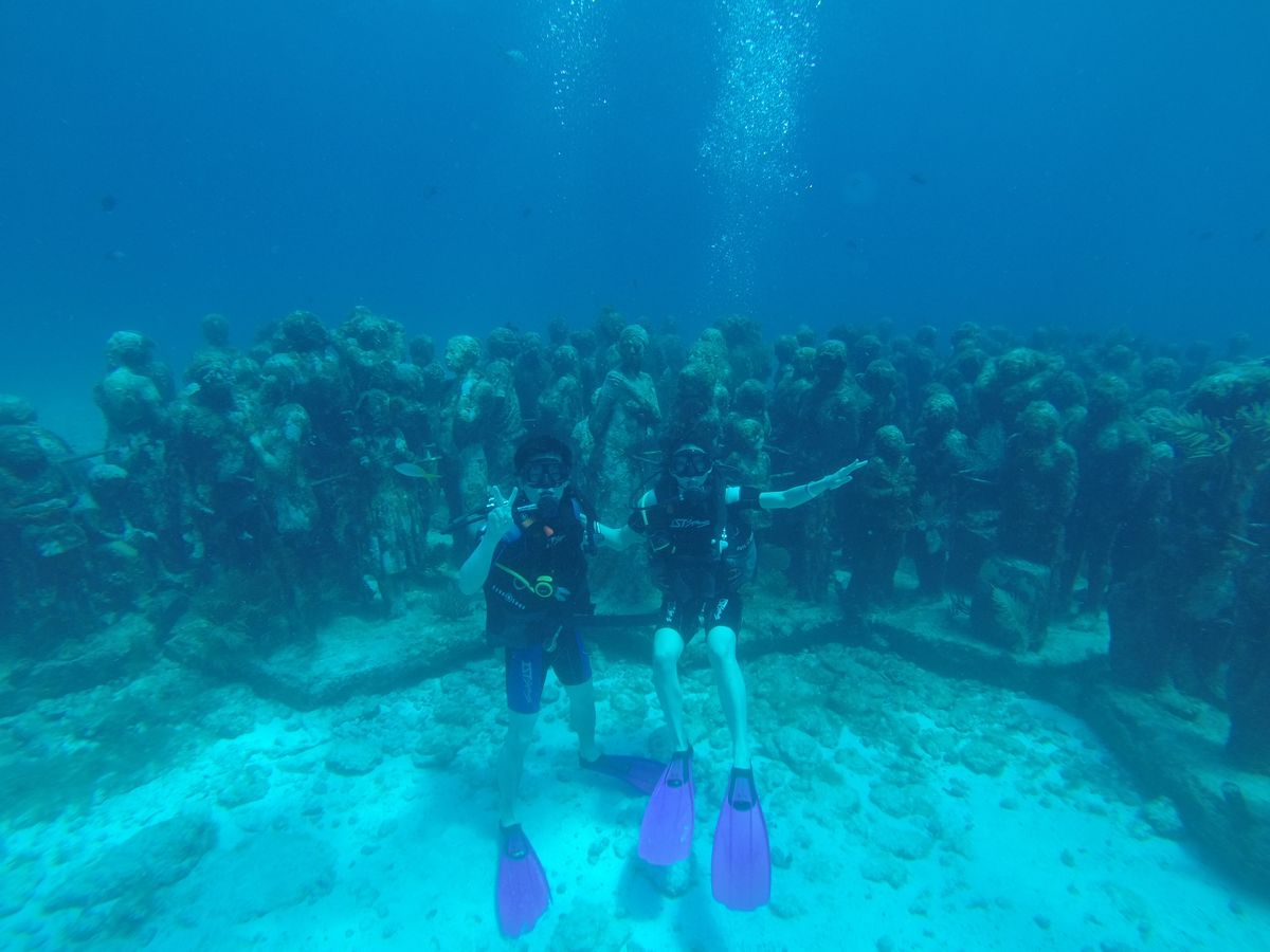 今、話題の水中美術館での体験ダイビングでは、穏やかで高い透明度の水中をたくさんの石像にカラフルなカリブ海の魚たちなど楽しんでいただけてよかったです。