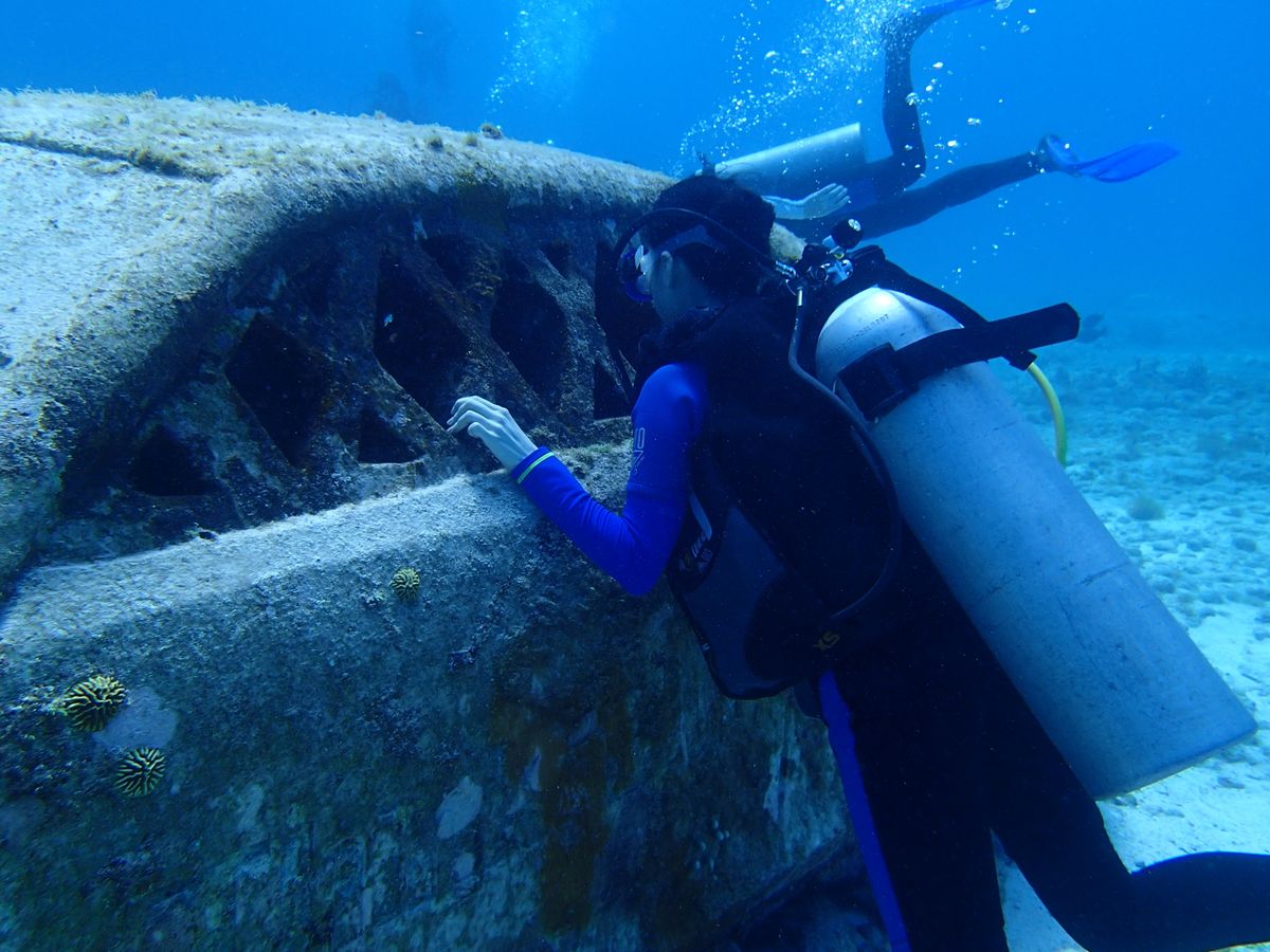 初めてのダイビングとっても緊張されてたと思いますが、水中に入ってしまえば石像やたくさの魚に囲まれて