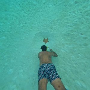 4箇所周ると書いていましたが3箇所周りました。最初のポイントはかなり深めで魚がたくさんいるディープブルーの海で、フィンは貸してくれると書いてましたが貸してくれませんでしたので、心配ならライフジャケットを着用できます。ポイントまでは40分かかりました。他の会社のボートにたくさん追い抜かれました。2箇所目が私達の目的地であるエルシエロでした。ヒトデの数より人間の方が多く、ネットのような綺麗な写真は難しかったし、深すぎてヒトデは綺麗な赤色ではなく黒色でした。3箇所目は膝下の浅いところで足元を魚やエイが泳ぎます。棘に注意してください。水に浸かりながらマルガリータを飲み、セビーチェ、フルーツを食べました。美味しかったです。この日ば残念ながらスコールで強い雨が打ち付けて寒かったです。トイレは海でします。水着は着て集合しますが、ツアー終了後はシャワーも着替える場所もなく、このツアー主催者のレストランで食事をすれば水のシャワーは使わせてくれますが着替える場所は無いです。トイレとか使えばいいと思います。全体的な評価は楽しかったです。