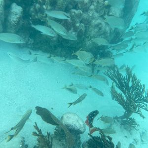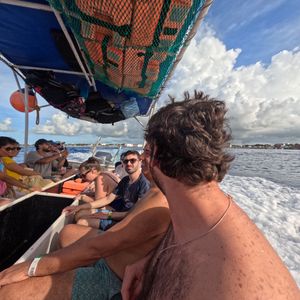 シュノーケルは他の方も含めて、20人くらいのグループでした。3箇所のスポットをそれぞれ25分程度楽しめます。値段を考えると安すぎるのでは??と思うくらいの感動があり充実度の高いアクティビティです。食事は取れないのですが、途中でナチョス、スイカ、ビール(or 水やソーダ)の提供もあります。長く船に乗ることになるので、酔いやすい方は注意。所要時間はトータル4時間程度でした。