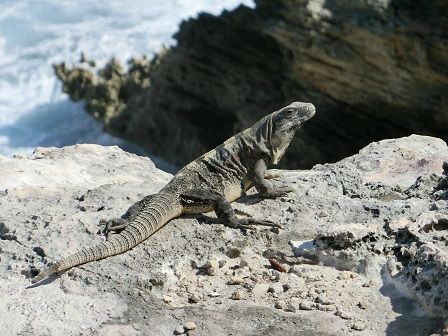 なお、往路だけ日本語スタッフのサポートがあるコースにしたのですが、港までの行き方も不慣れですし、船に乗船してからの手続きなども含め、サポートがあってよかったと思っています。帰路は各自でホテルに戻りますが、港にタクシーも待っていますし、ホテル行きのバスも頻繁に通っているので心配ありません。このスタッフさんから、イスラ・ムヘーレス島の簡単な地図をもらい、ロイヤルスイムの後に島の観光もしてきました。島の最南端の岬にいくと、野生のイグアナにも出会えます。スイムだけでなく、島の観光もおススメです。