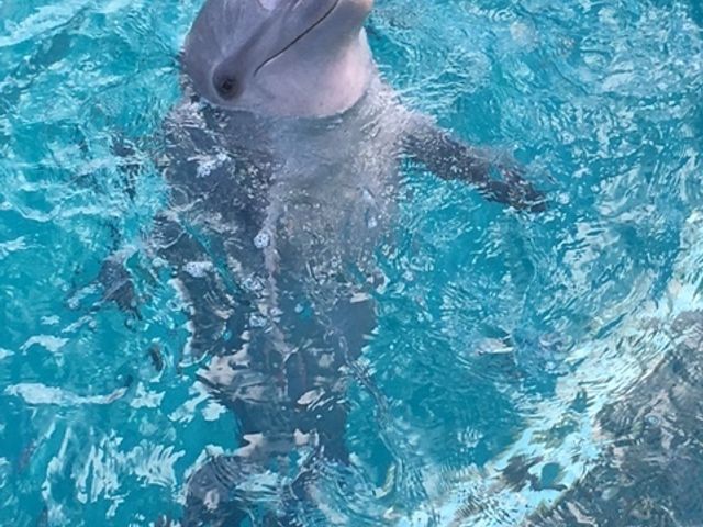 こんなにイルカと戯れられて、しかも足を押してもらって浮いたらできるところは日本にはまずありません。お値段以上に満足でした!