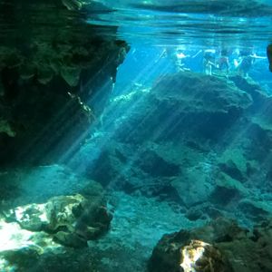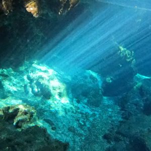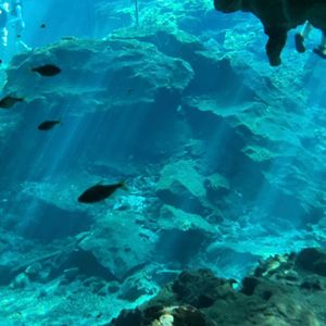他のツアーよりも遅い出発時間だったが、セノーテは透明度もあり、何よりこの時間だからこその光のカーテンや水面の輝きを見ることができました!1時間くらいいた中でも、光の揺れ方や水面の色も変わってきて、全く飽きることがなかった。シュノーケリングの時間も十分にとってもらえたので、セノーテ全体を満遍なく泳いで廻ったり、気になる場所に近寄ったりできた。
