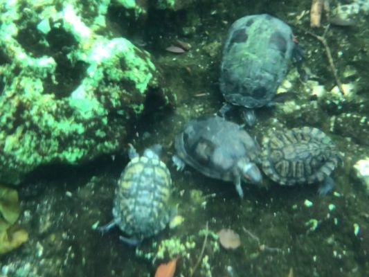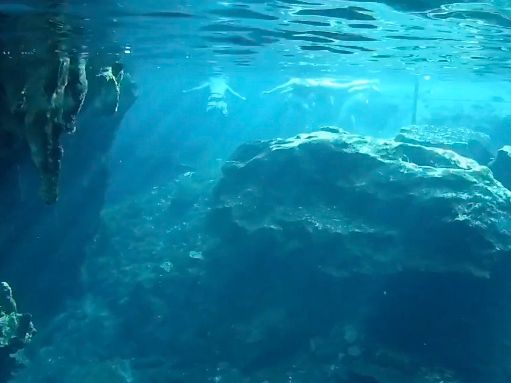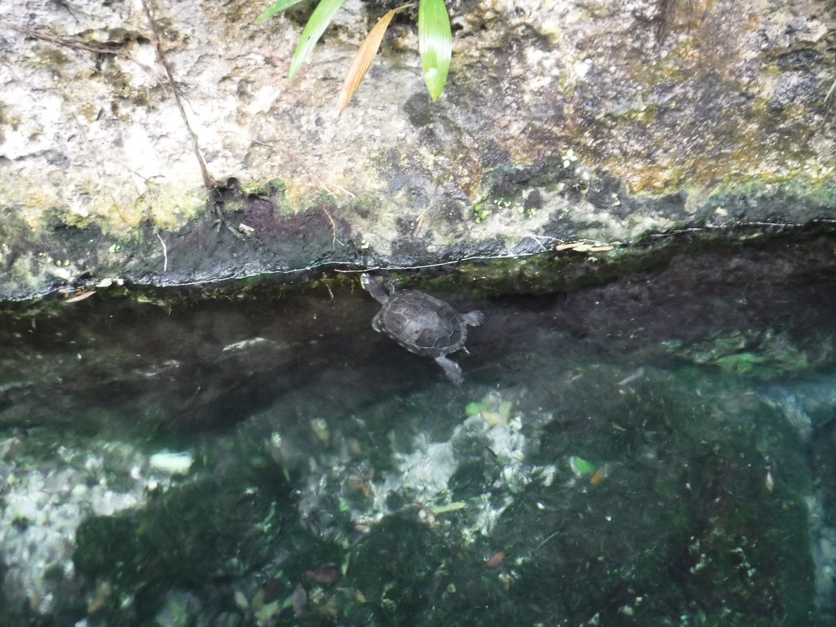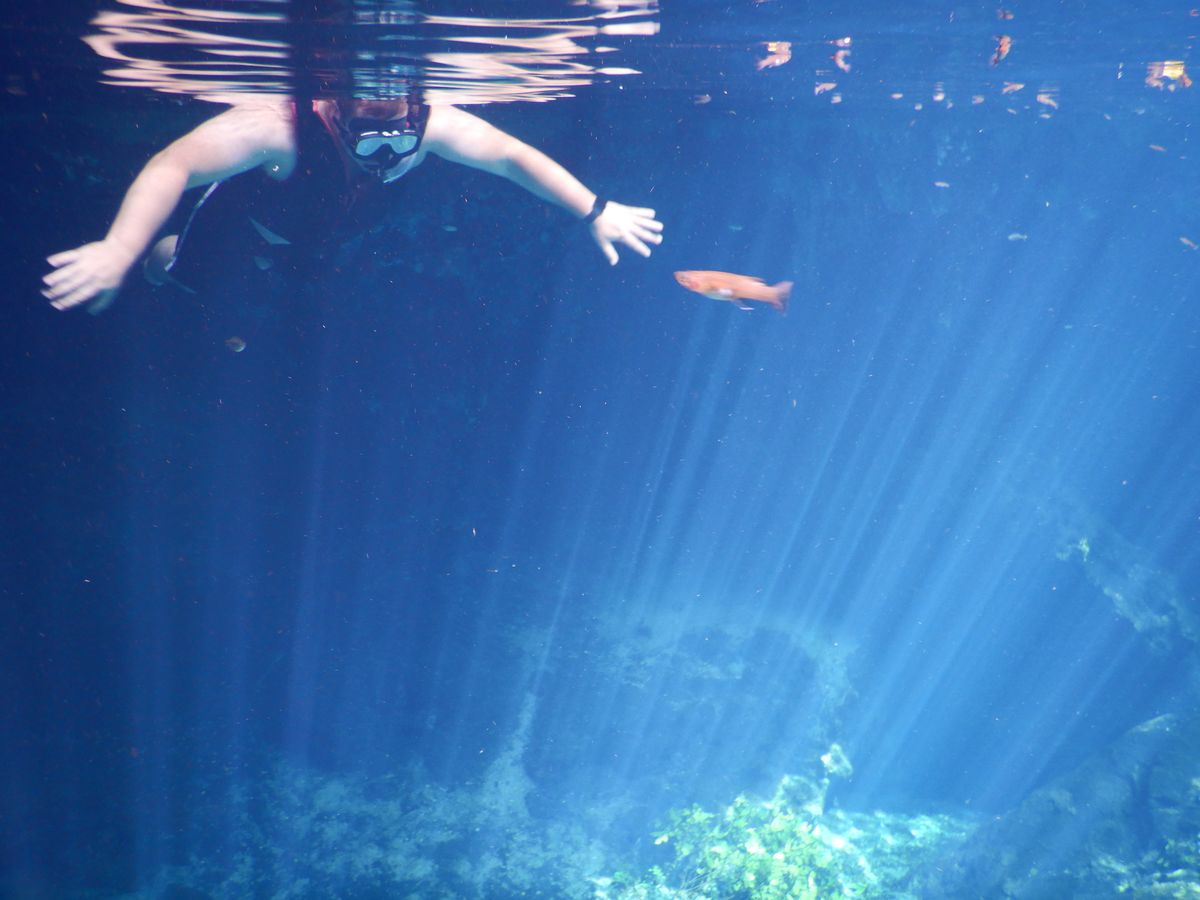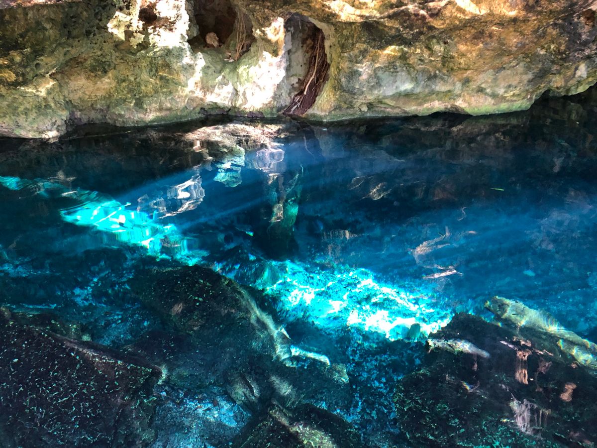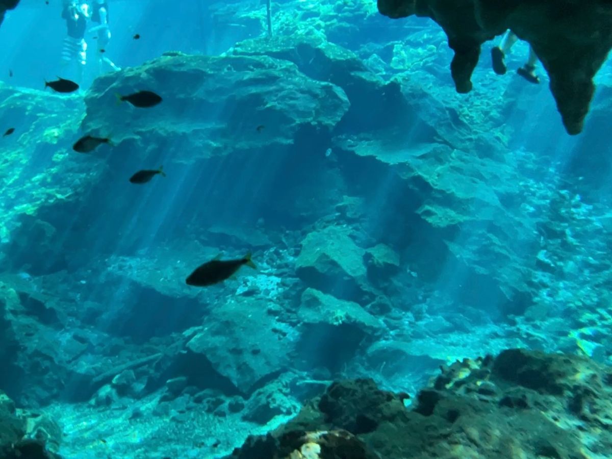 グランセノーテは想像以上に綺麗で、水が透明で様々な生き物が見られました。私たちはシュノーケリングに挑戦しました。