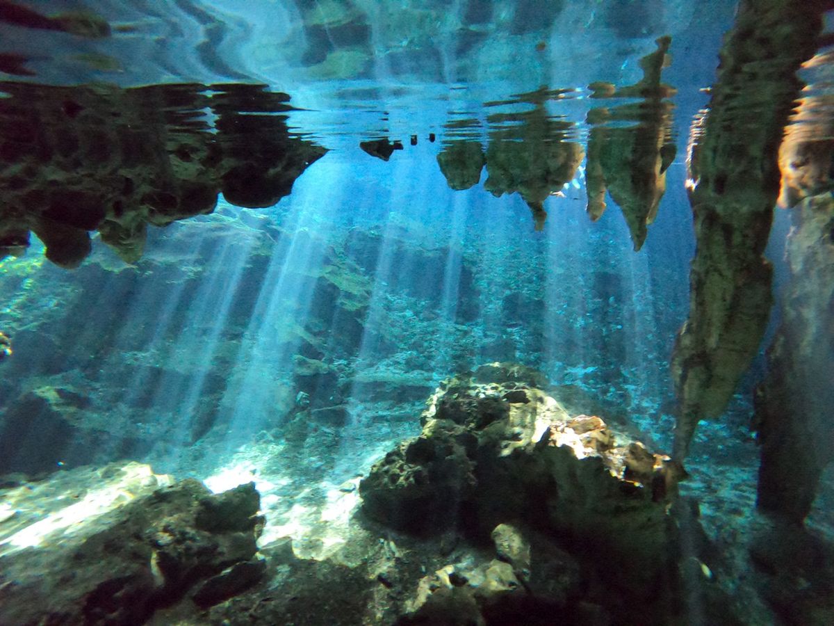 セノーテでは太陽が出て光のカーテンも見ていただけてよかったです。