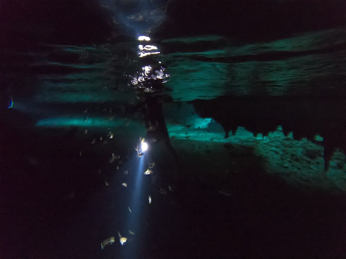 グランセノーテには私達が一番早く着き一番早く水中に入れたのでとてもきれいな水中を見ることができましたし、貸して頂いた水中カメラのおかげで沢山の素晴らしい写真を取ることができました。小林さんが絶妙のタイミングを教えてくれたのであの光のカーテンを見てカメラに収めることができました。