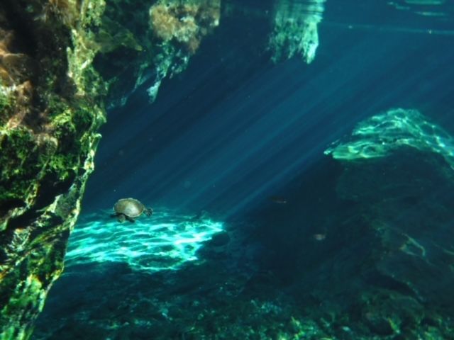 透明感抜群のグランセノーテ、朝一番乗りでたっぷり楽しむことができました。