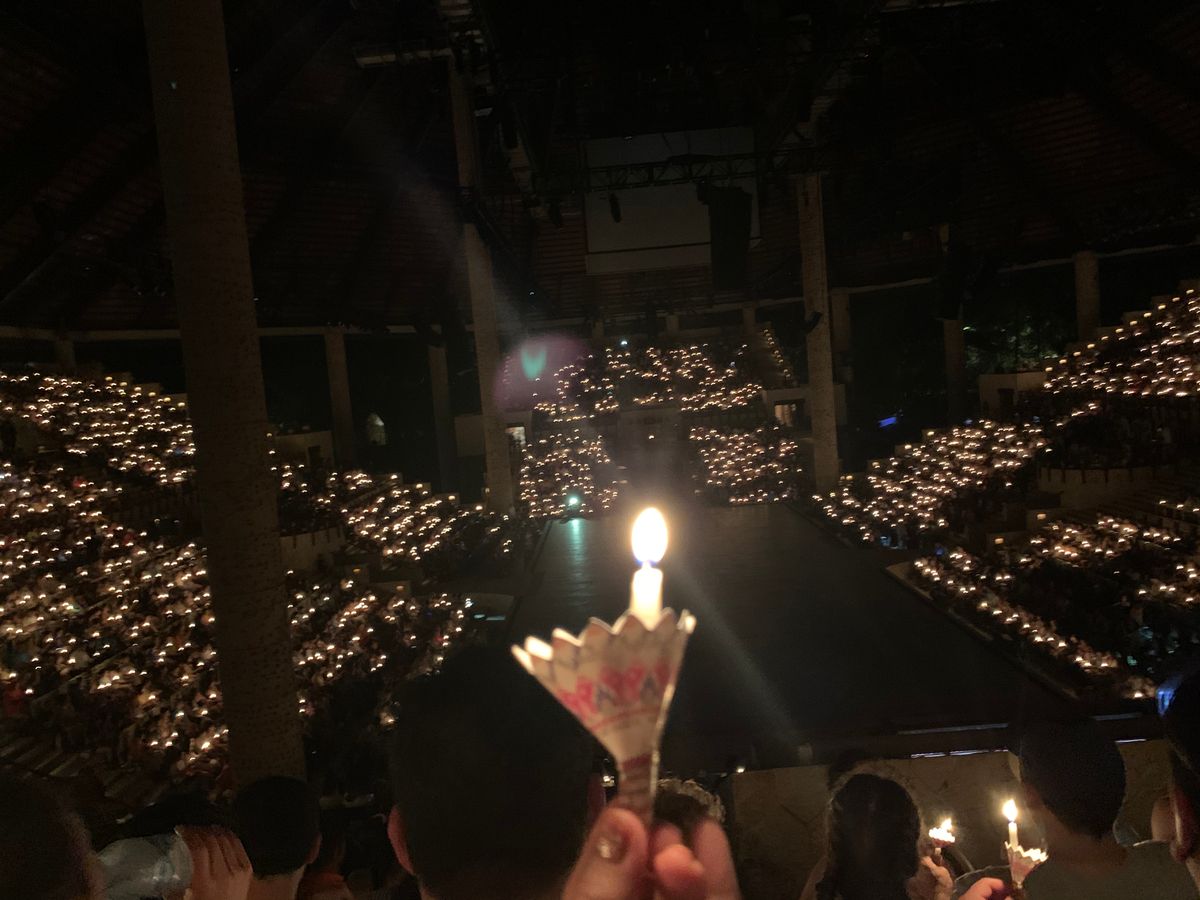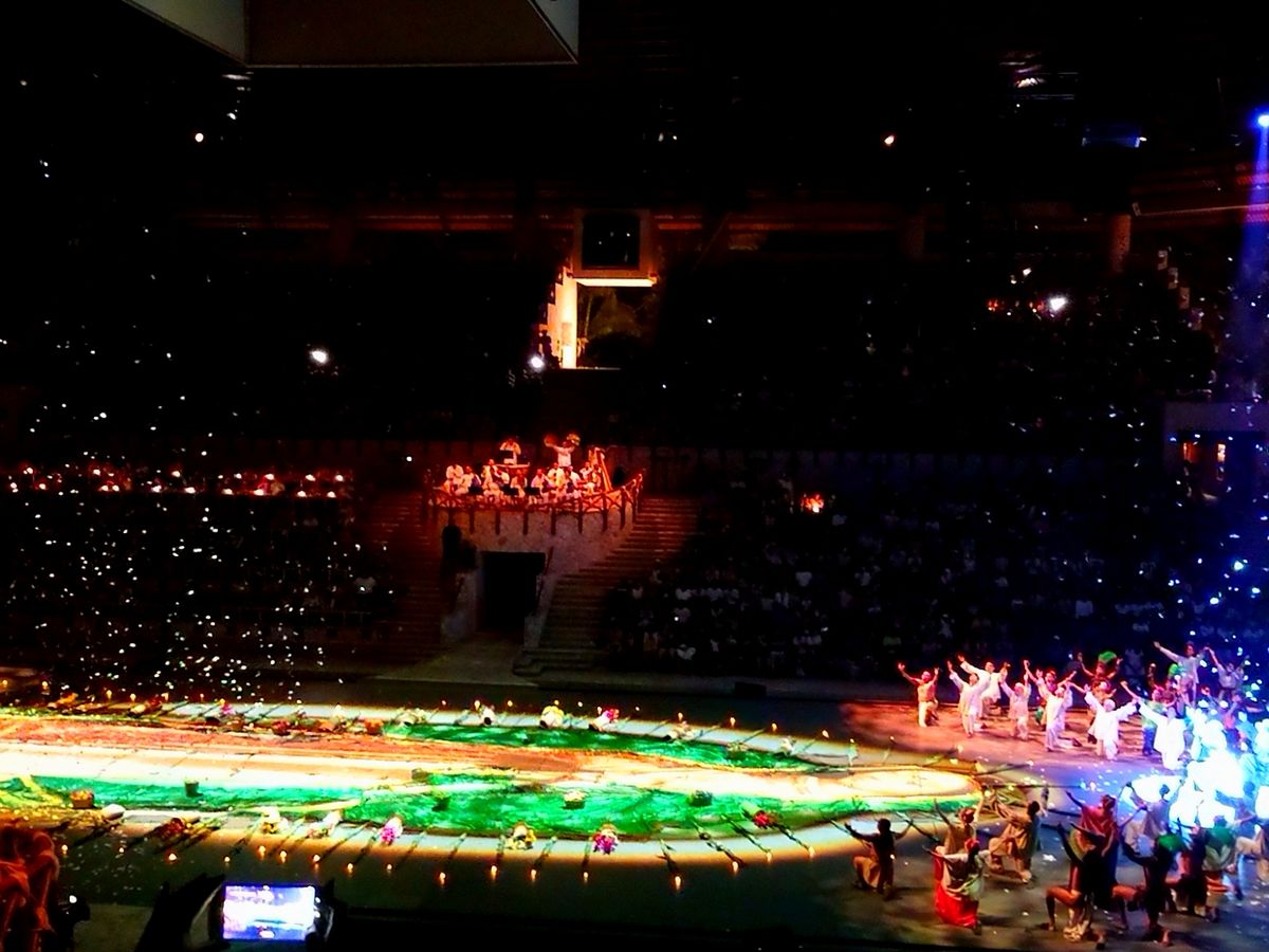 夜のショーは早い時間からみんな場所取りに向かっていました。