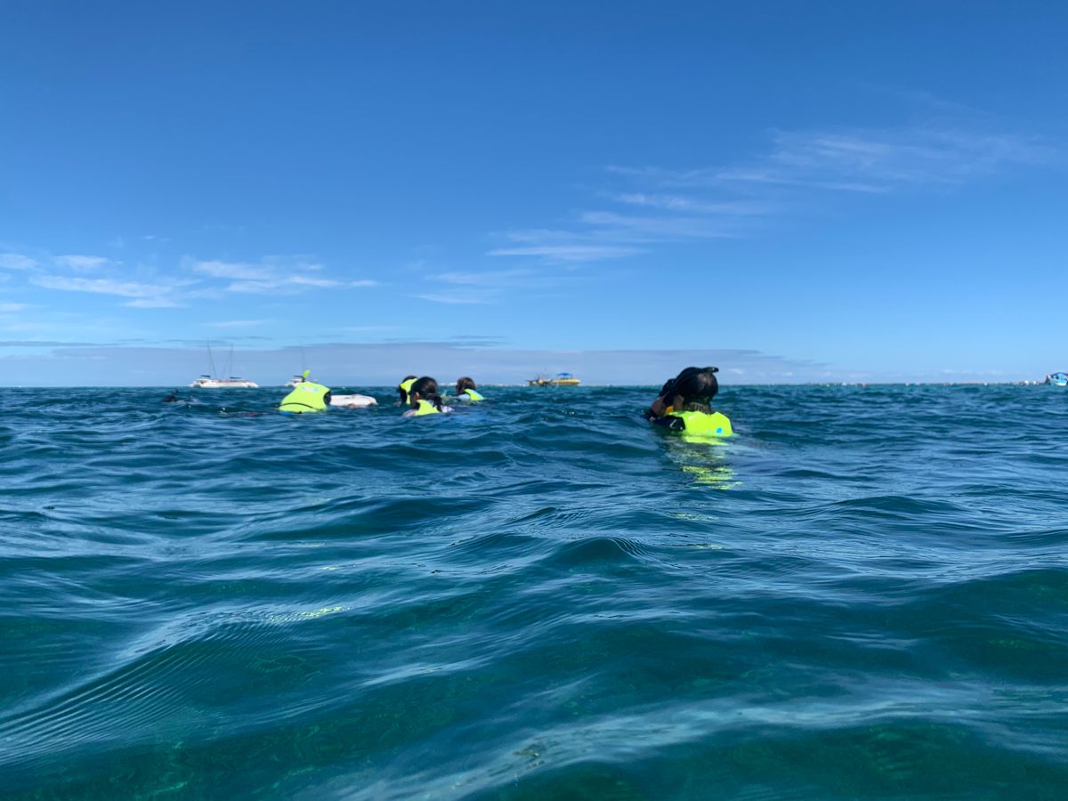 シュノーケリングのゴーグルが緩いと目や鼻に海水が入ってくるのできつく閉めるのが良い。途中、小さい水のペットボトルを配布してくれるサービスが有り難かった。