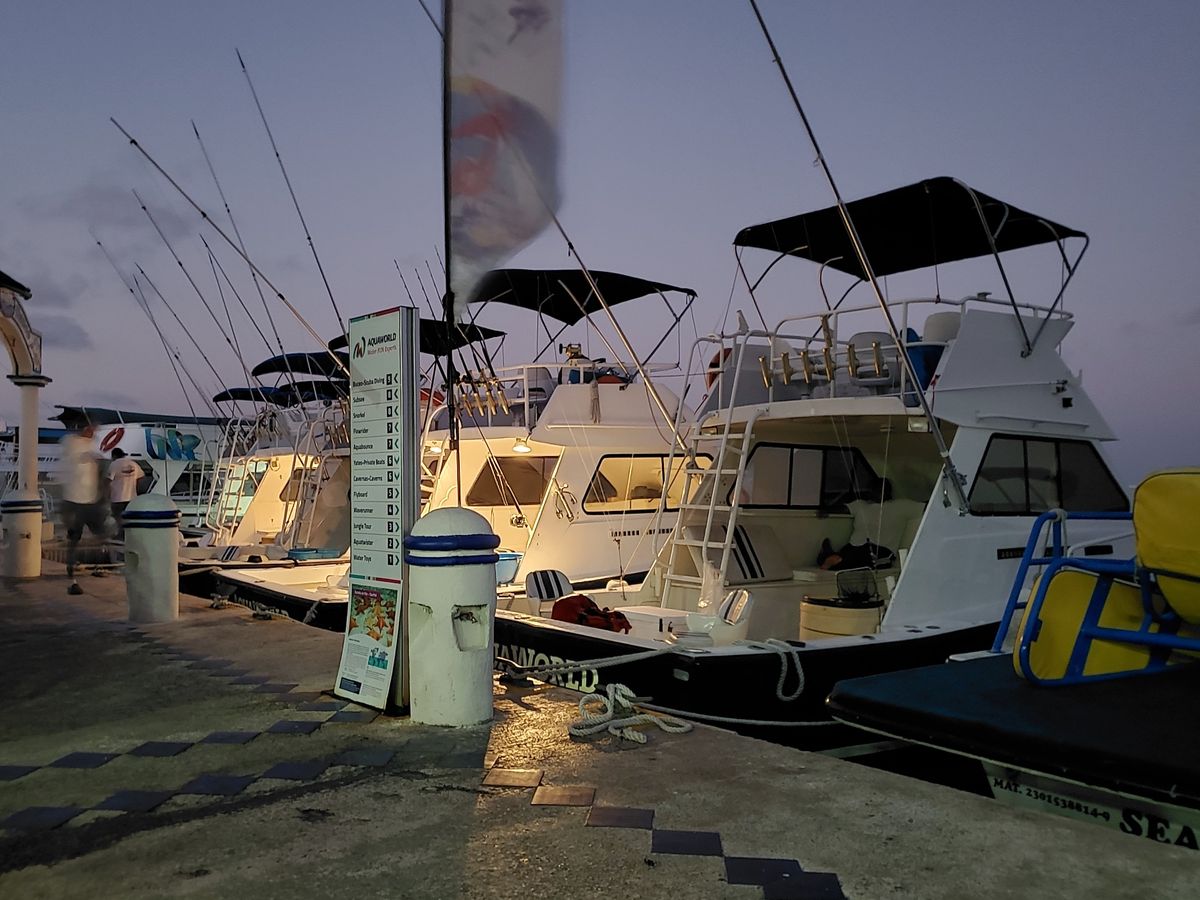 朝日が昇るのを船の上から見れたのは幻想的でよかったですが、コバルトブルーのキラキラしたカリブ海をイメージされている方は、朝一のツアーじゃないほうがいいのかもしれません。