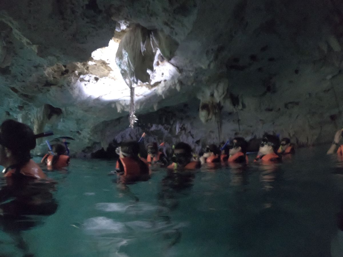 朝ホテルピックアップ6:20→セノーテ8:10オープンと同時に入る→準備→朝日のカーテンをみる→セノーテ内の洞窟を少し探検→自由時間→シャワー・着替え→ホテル着11:20頃でした。