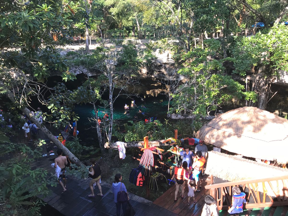 朝8:45にピックアップしてもらい、まずはグランセノーテへ向かいました。道中、日本人添乗員さんにしていただいたメキシコの歴史、マヤの遺跡や文化の説明がとても興味深く、あっという間にグランセノーテに到着しました。元日という事で、催行しているツアーも少なかったからかかなり空いていて、ほぼ貸し切り状態であのガイドブックに載っているようなセノーテを満喫できました。