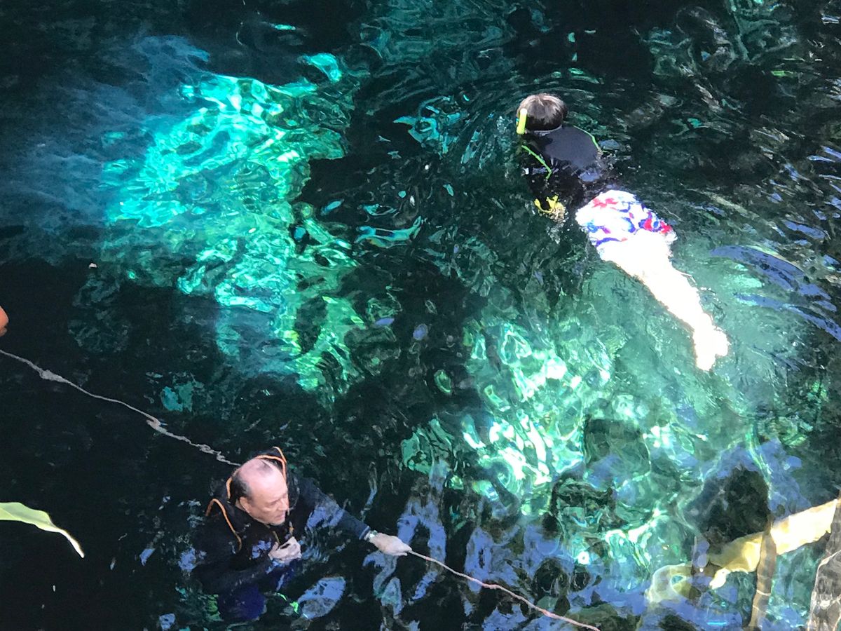 水中に入るのは寒くて苦手な私ですが、セノーテの中は意外と温かくて大丈夫でした。