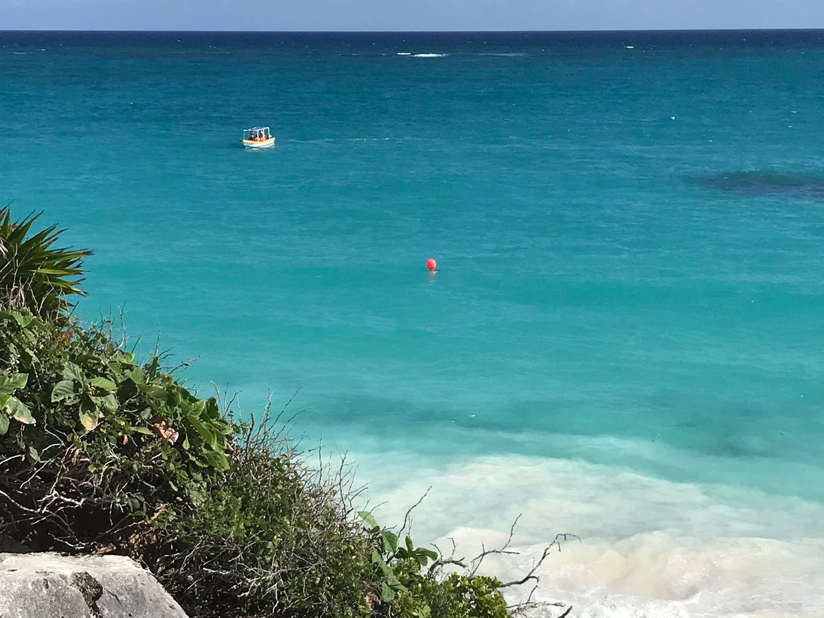トゥルム遺跡はセノーテのすぐそばで、入場後の写真撮影スポットなどを教えていただいたおかげで青い海と遺跡のコラボを堪能できました。暑いので、帽子は持って行かれた方が良いです。トゥルム遺跡ではお土産ものやさんも多いです。