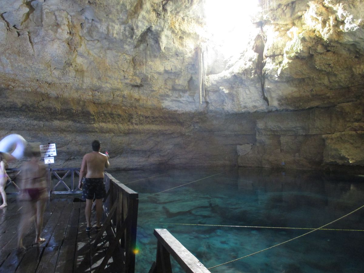 朝から半日でまわれるため午後から別の観光ができました。セノーテに一番のりで入れるので水がすごく透きとおってました。セノーテに入ってひと通りガイドさんがセノーテ内を案内してくれます。その後自由時間でした。写真、動画、いっぱい撮れてよかったです。