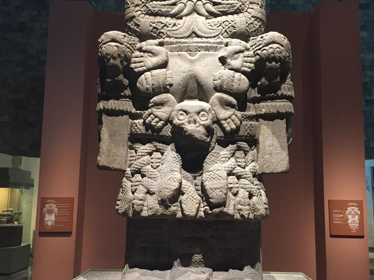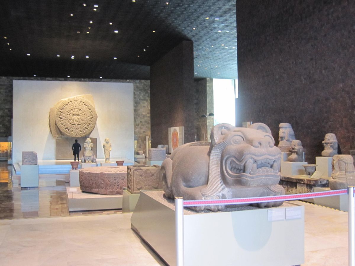 国立人類博物館も展示品横のスペイン語と英語の解説以外の情報源がなく、このツアーでは、時間内で適切かつ詳しくか案内していただき、アステカをはじめとしたメキシコの文明を概観することができました。そこからの発掘品は、前日訪れたテオティワカ遺跡を思い出させ、私たちをアステカの信仰の世界に誘う。