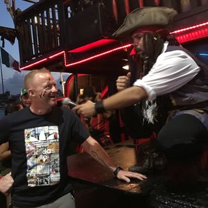 英語もスペイン語もほとんどしゃべれない中での参加でしたが、アクロバット担当の海賊の中に日本語の上手な方が1人いて助かりました。海賊風のメイクもしてくれました。