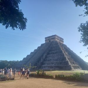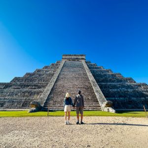 チチェンイッツアでは一番乗りで入れて、人も少なく写真映えしました!色々歴史を説明してくれた後30分自由時間がありました。自由時間の開始場所が月のピラミッド(工事してる箇所あり)から少し離れていて集合場所に戻る時も少し時間がかかります。