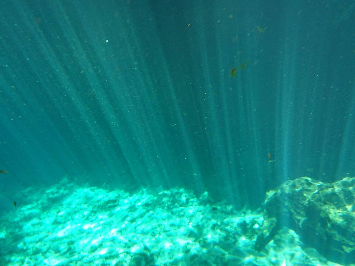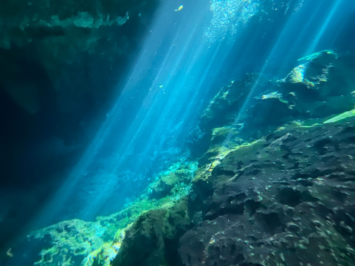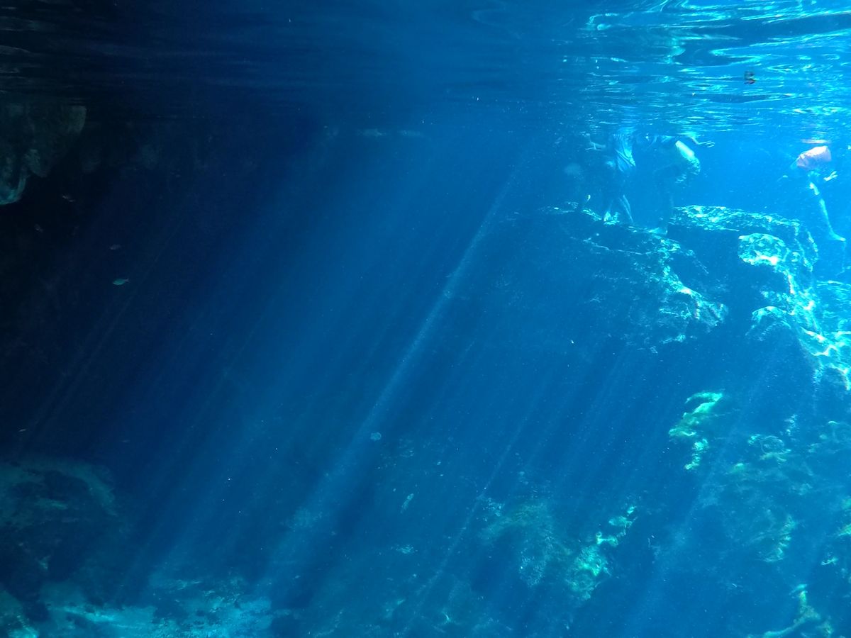 まずグランセノーテでのシュノーケルは朝一だったということもあり、人も少なく水の透明度も高い状態で泳ぐことができ、光のカーテンもばっちり見えました!