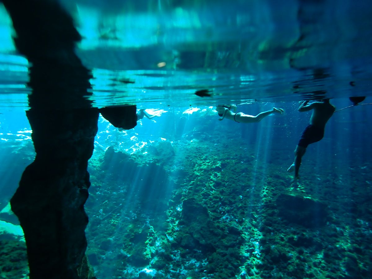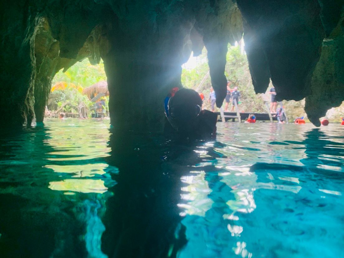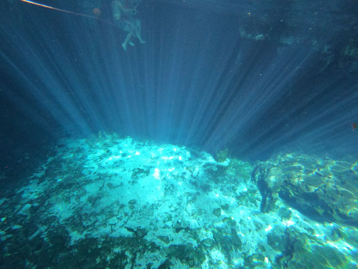 まずグランセノーテでのシュノーケルは朝一だったということもあり、人も少なく水の透明度も高い状態で泳ぐことができ、光のカーテンもばっちり見えました!
