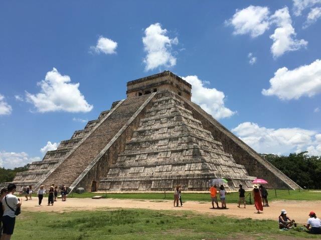 次に2時間かけてチチェンイッツァへ向かいました。グランセノーテや遺跡までの道中はガイドさんが色々と説明をしてくれるので目的地に着く頃には基礎知識が身につけられます。チチェンイッツァではガイドさんにおすすめの写真スポットやレリーフの説明などマヤ文明について沢山勉強になりました。日陰があまり無いので、しっかり水分補給をしながら周ることをすすめます。