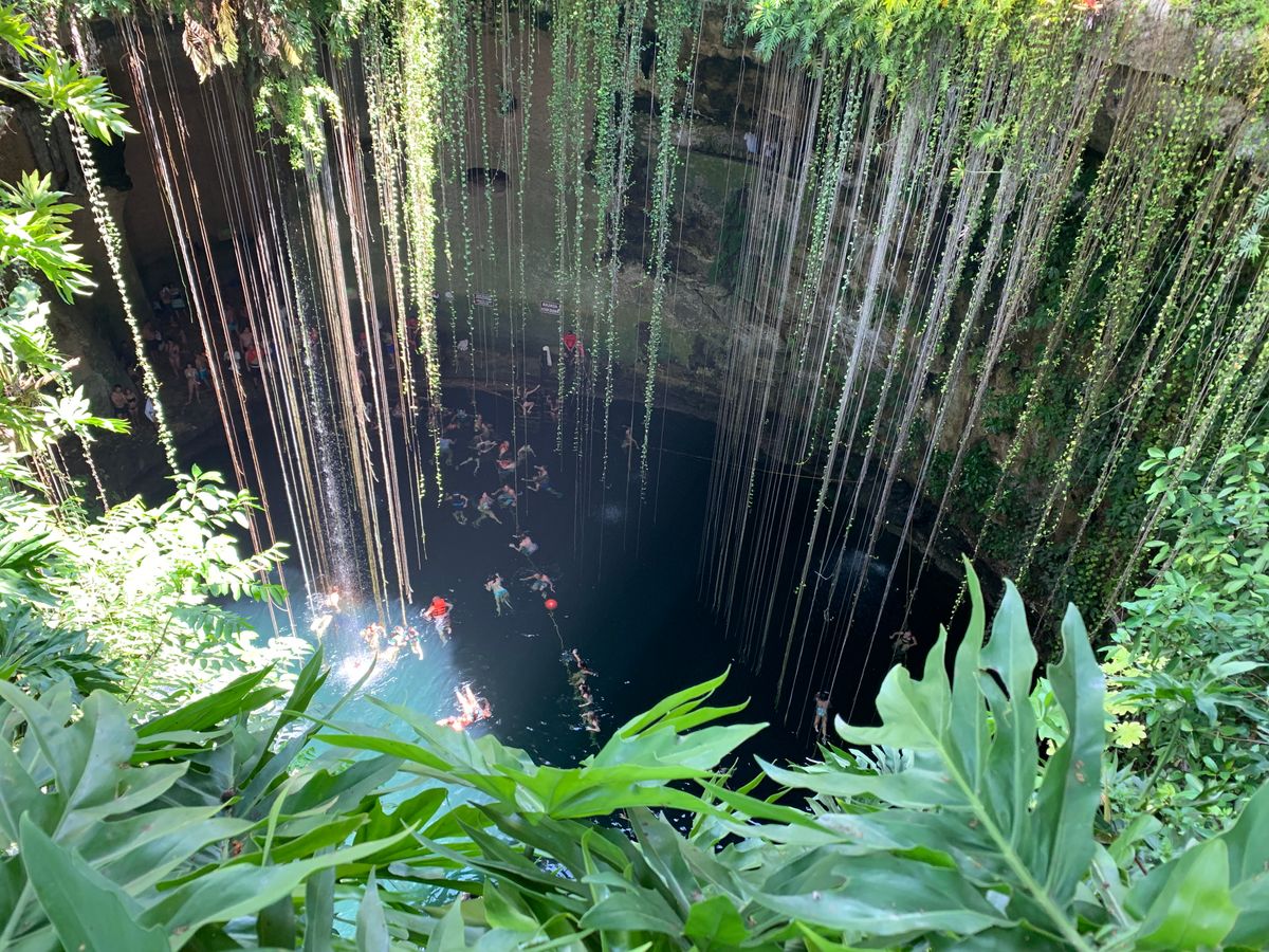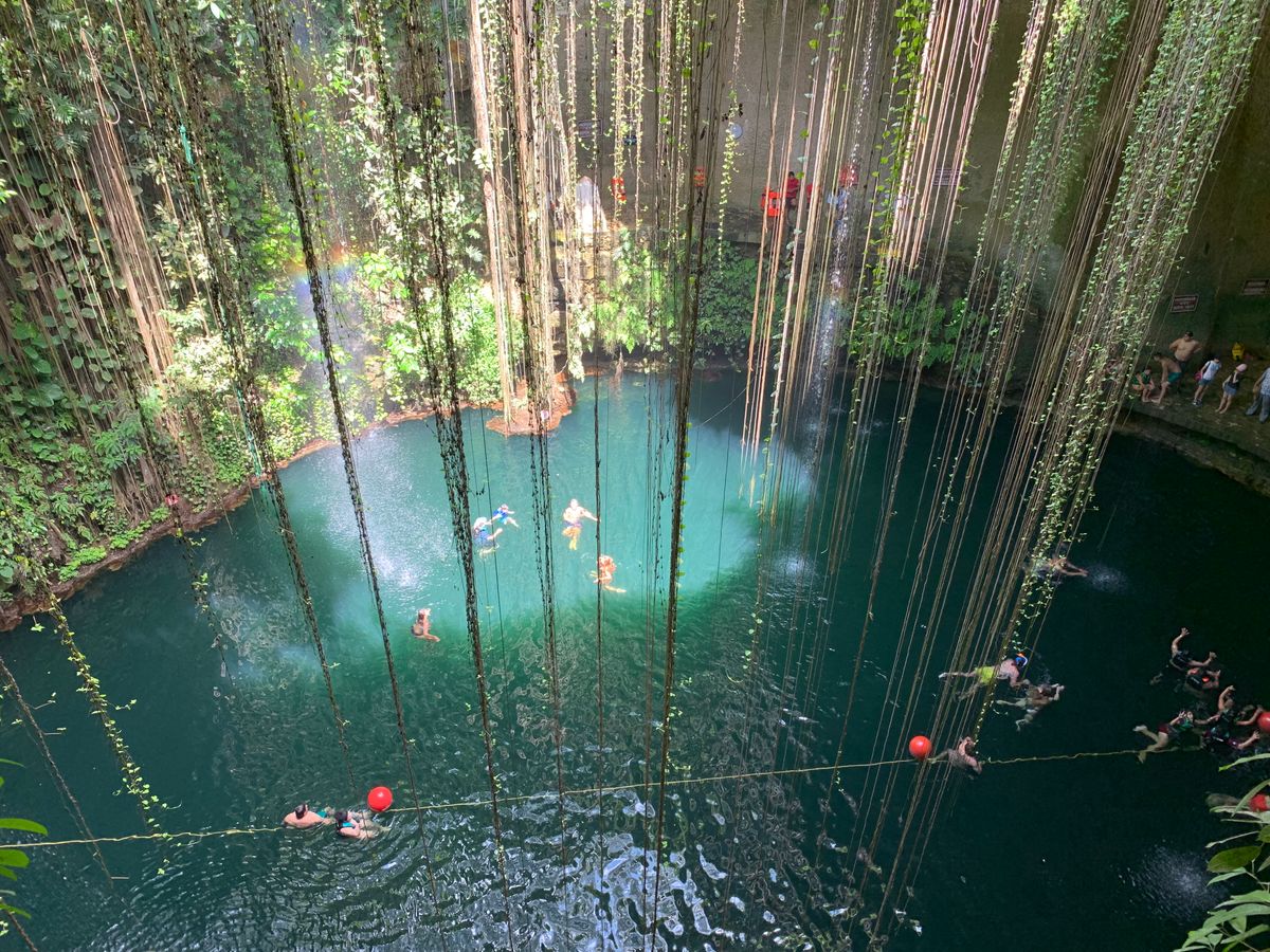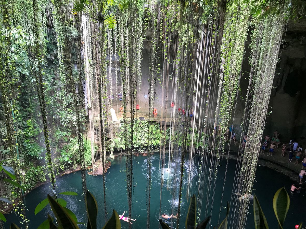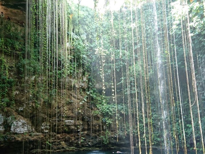 水の透明度はグランセノーテの方が綺麗ですが、高さのあるイキルは蔦の緑と水の青のコントラストが素敵です。納得いく写真のために15分ほどは確保したいです。