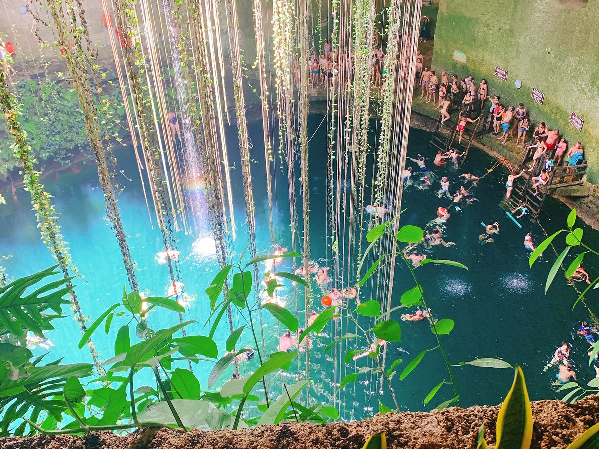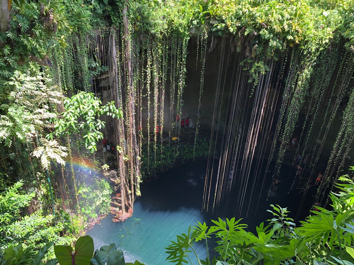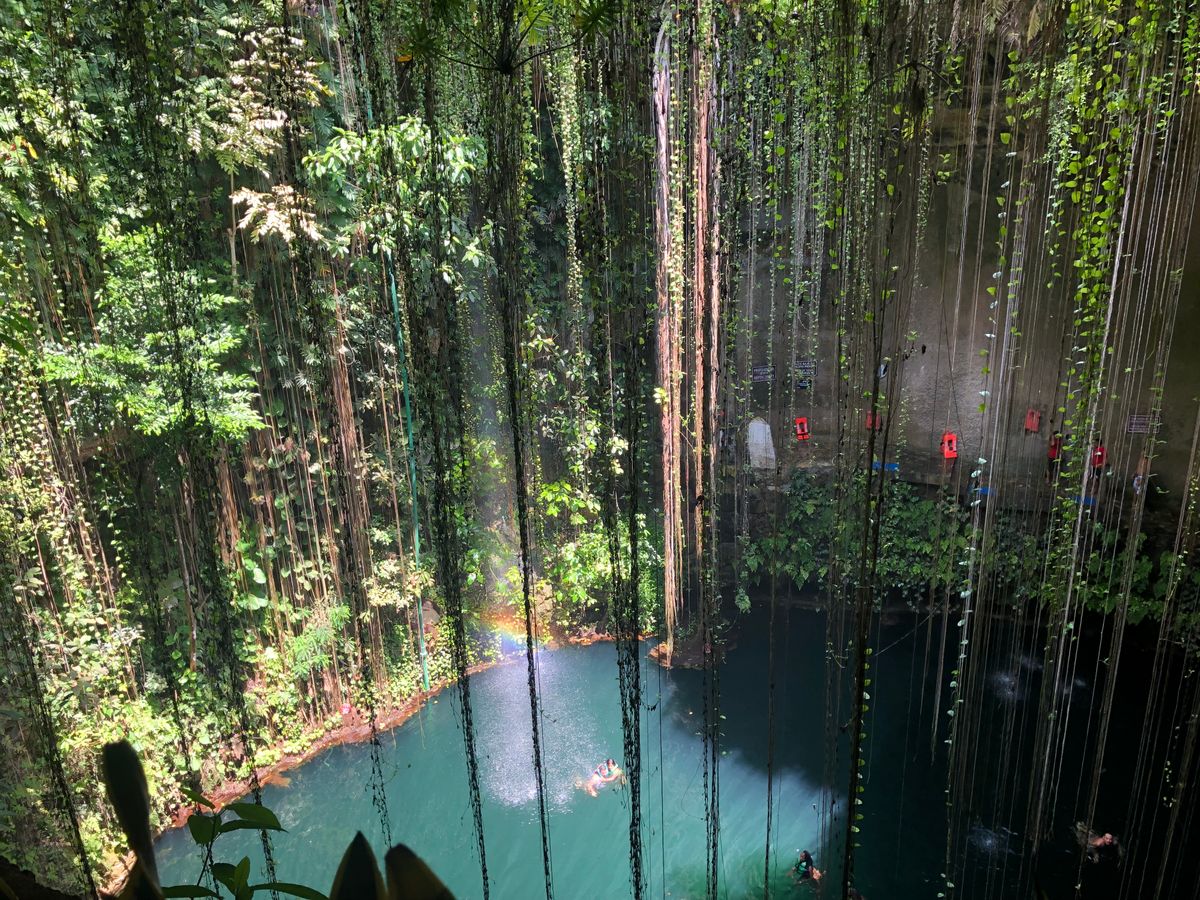 水の透明度はグランセノーテの方が綺麗ですが、高さのあるイキルは蔦の緑と水の青のコントラストが素敵です。納得いく写真のために15分ほどは確保したいです。