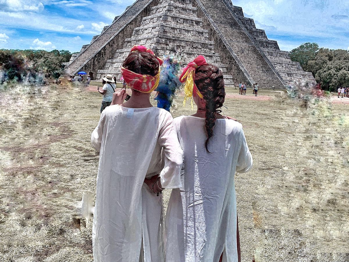 チェチェンイッツァではかなり暑かったので、日傘や帽子、サングラスを持っていくといいと思います。水はマストです。二人で1リットルは飲んだと思います。