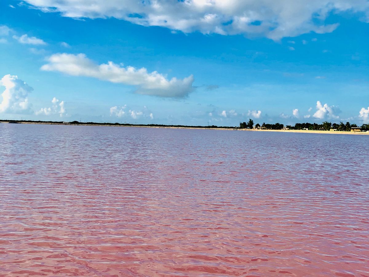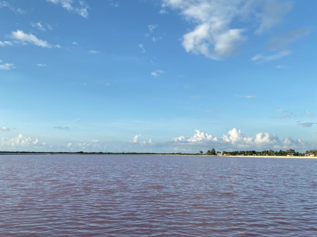 私たちのホテルは朝6:20のお迎えのはずが、5分以上過ぎても来ない、、そろそろ緊急連絡先に電話をしようと考えていたところ、日本人ガイドのマミさんがホテルに電話をくださり従業員の方から「もう少し待ってて」と伝言を頂きました。いざ、バスに乗り込み出発。この日はピンクレイクに行かないグループも含めて26人の参加でした。私たちを含め、ほとんどがハネムーンのカップルです。大型バスだったので広々。グランセノーテにはすぐ着きました。バスを降りてびっくり。寒い!!シャワーを浴びるのですが、ガタガタ震えが止まらず本当に本当に寒かったです。セノーテに入ると暖かく、きれいな光のカーテンや魚を見ることができました。洞窟の方へは怖くて進めなかったです。女性用トイレは数も少ないのでゆっくり着替えたい人は早めにあがった方が◎です。時間どおりバスに戻り、チチェンイッツァへ。トイレは便座がないものが多いので注意です。そして、セノーテとは激変、とても暑い!写真撮影やガイドさんのお話を聞きながら楽しんでいたのですが、たちっぱなしということもあり、寒暖の差から気分が悪くなり目が見えなくなって立ち上がることができなくなりました。旦那さんがガイドさんに伝えにいってくれたのですが、なかなか助けにきてもらえず、ひとりで苦しんでいました。(笑)日本にいたら救急車を呼ぼうかと思うくらい気持ち悪かったです。しばらくするとよくなったので、お昼ご飯とセノーテイキルへ。お昼はバイキングです。味は普通。ドリンクのチップは机の上にカゴを置かれるのでその中へ。セノーテの写真を上から撮って終了。ピンクレイクへ向かいます。この日はとくべつに田中さんという日本人の方が最後まで同行してくださったので安心でした。バスの移動中は基本的に爆睡。。大型バスで人数も少ないのでひとりで二席使えました。よく眠れます。ピンクレイクはとても美しく、フラミンゴもいました。写真では伝わりにくいのですが、光のあたり具合でとてもピンクになります。次にメキシコ湾にいきましたが、正直カンクンの海の方が100倍きれいなので必要なかったかな。バスから降りて砂浜を歩くし、なんだか疲れました。次のトイレ休憩のリオラガルトスはメキシコの方の日常が見られる港町。レストランのトイレも清潔で夕焼けが美しく素敵な町でした。スナックなども買えます。帰りはまたまた長いバスですが、とにかく爆睡。すぐにホテルゾーンにつきました。21時半とかだったような気がします。長時間でしたが充実した1日になりました。おすすめです。