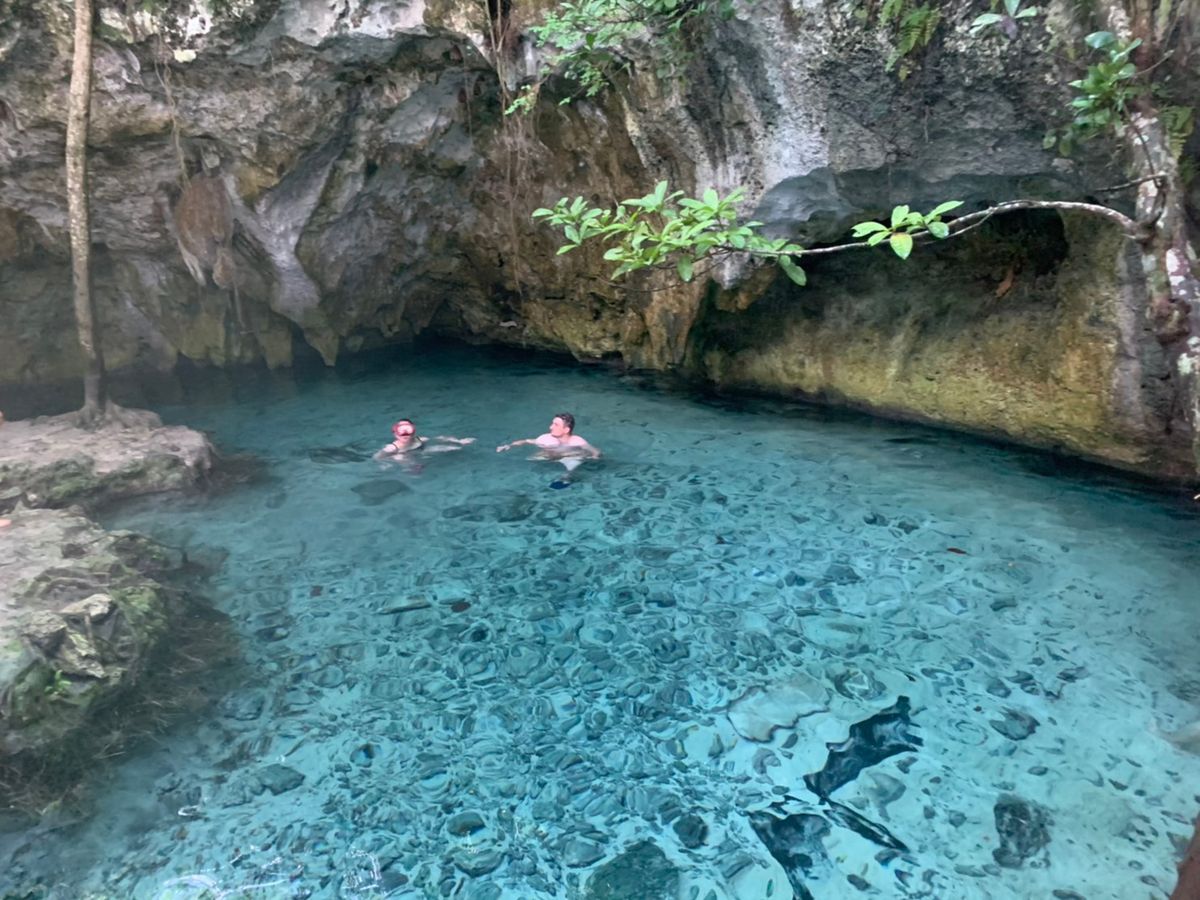 ツアーの工程は朝6時から夜の21時頃迄ととても長い1日です。グランセノーテでは綺麗な水やセノーテに差し込む光を見ながら泳け、朝早いので他の人も少ない中泳げたことがとても良かったです。