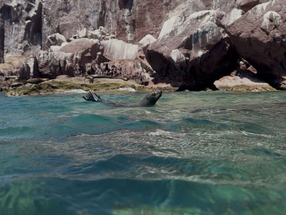アシカはたくさんいて向こうから泳いで近づいてきてくれることも。20〜30分ぐらい泳いでいたと思いますが慣れていなかったので体力的に限界でした。
