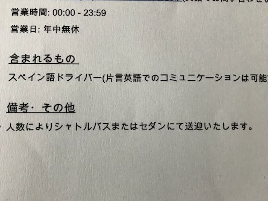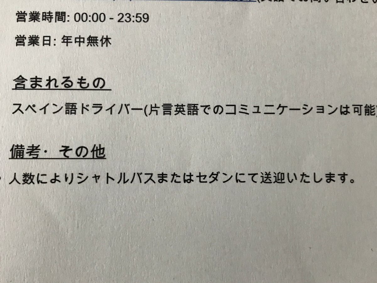 ドライバーさんは基本的にはスペイン語ですが、英語で簡単な会話ができる方だったのでコミュニケーションには問題ありませんでした。